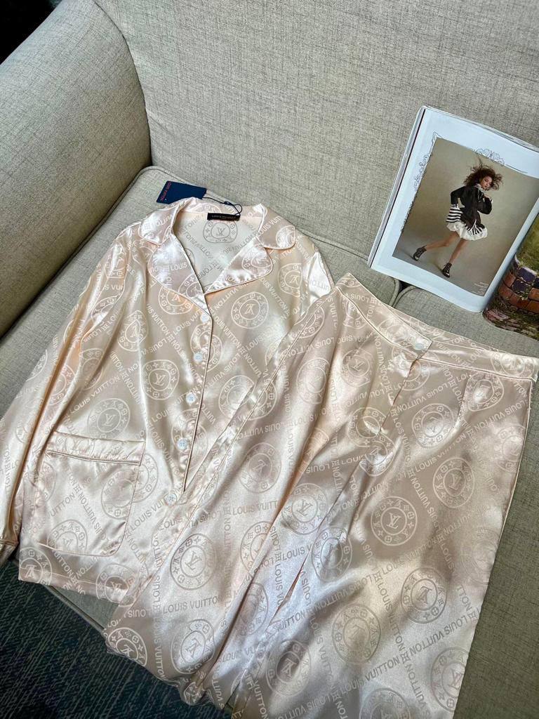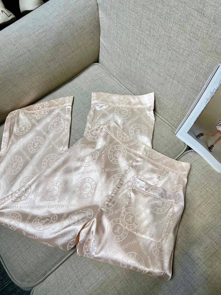 Костюм Louis Vuitton LUX-89760 — это изысканный комплект, объединяющий стиль и комфорт. Костюм выполнен в нежном персиковом цвете с фирменным принтом бренда, придающим ему узнаваемость и роскошь. Этот комплект идеально подходит для отдыха дома или создания элегантного образа.
