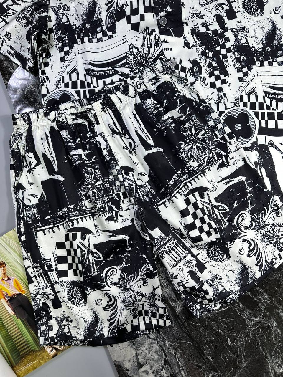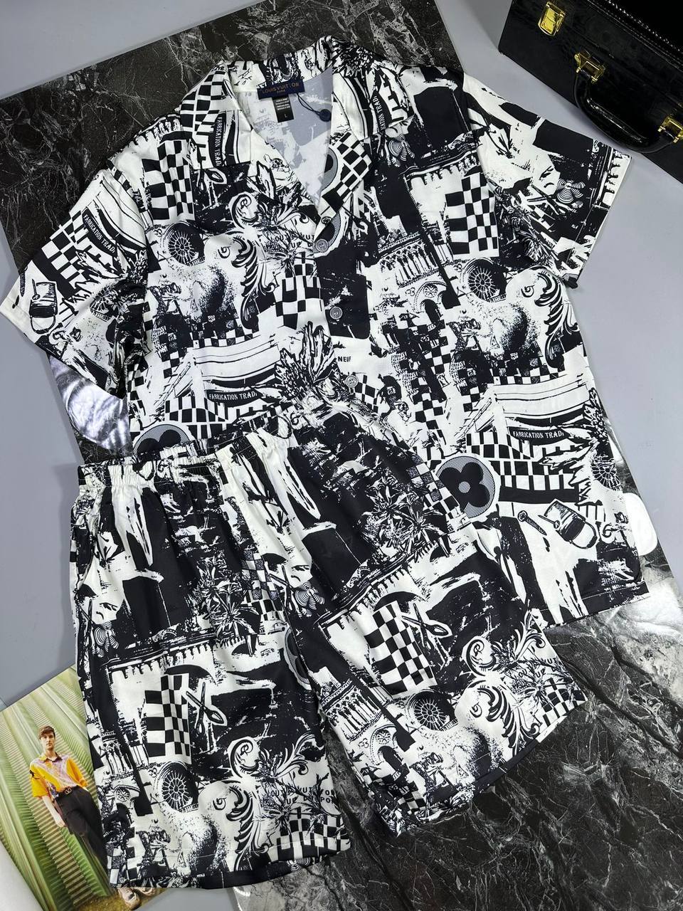 Костюм мужской Louis Vuitton LUX-92225 — это стильный комплект одежды, сочетающий в себе современный дизайн и роскошь. Костюм представлен в черно-белом цвете с оригинальным принтом, придающим ему уникальный вид. Идеален для создания яркого образа.