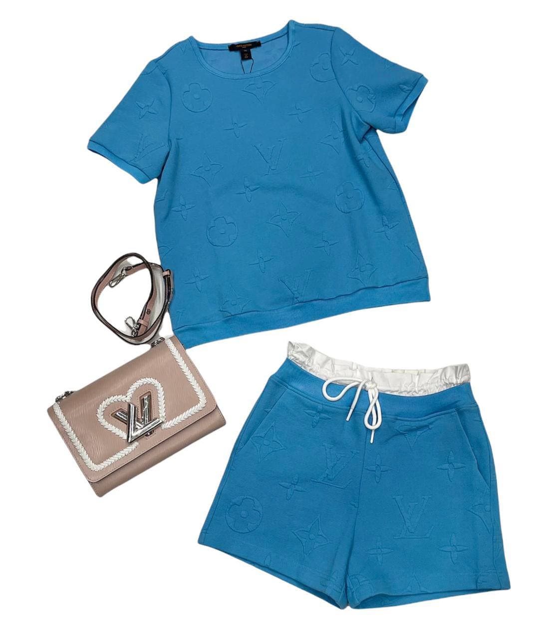 Представляем спортивный костюм Louis Vuitton LUX-62560. Этот стильный комплект, состоящий из футболки с короткими рукавами и шорт, выполнен в насыщенном синем цвете и украшен тисненым монограммным узором бренда. Костюм идеально подходит для создания расслабленных, но элегантных образов.