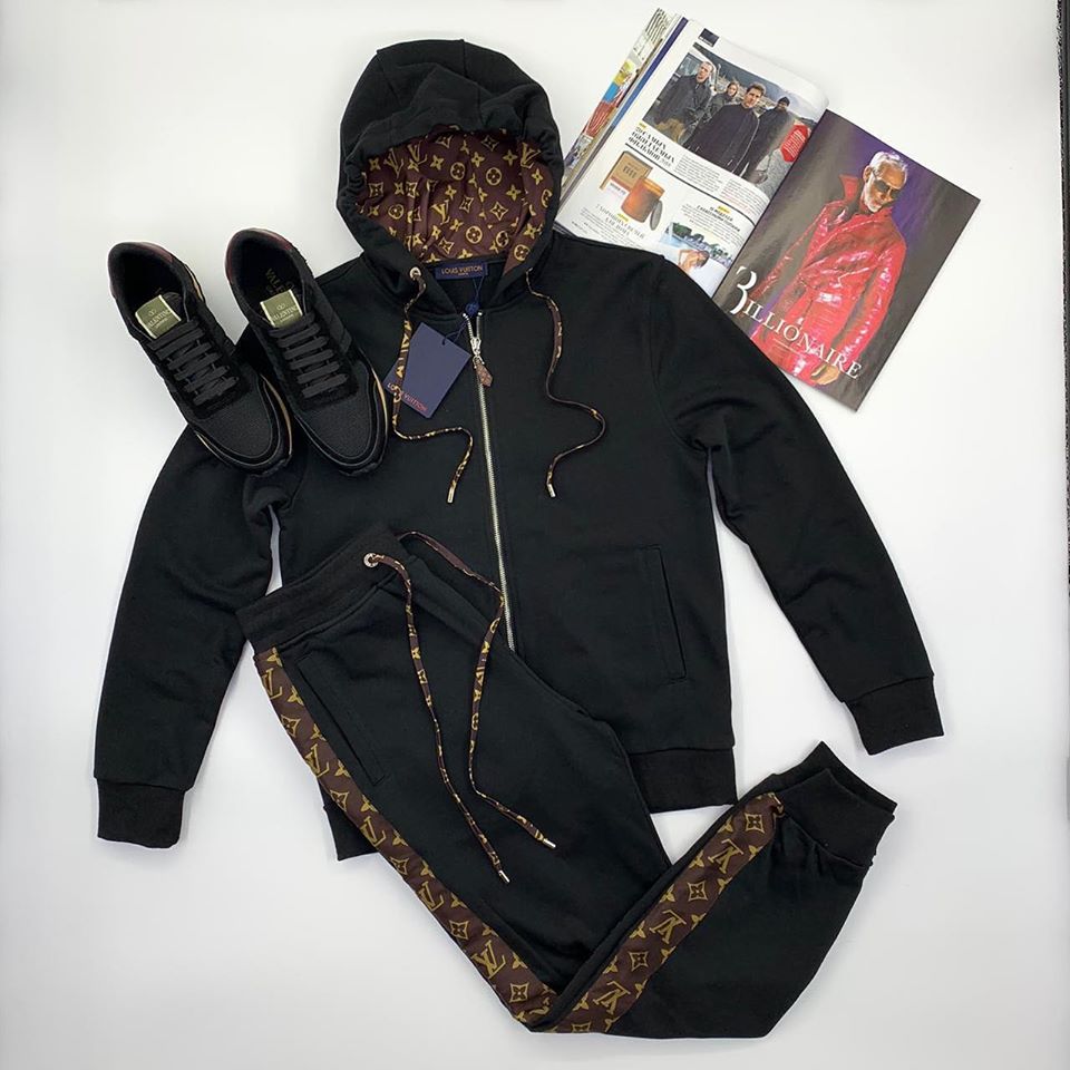 Спортивный костюм мужской Louis Vuitton LUX-23660 представлен в классическом черном цвете, дополненном узнаваемым принтом бренда. Комплект состоит из худи на молнии и брюк, что делает его универсальным решением для повседневного стиля или активного отдыха.