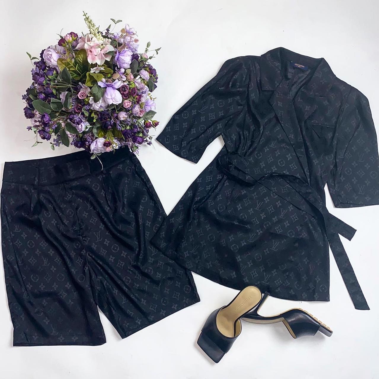 Элегантный женский костюм Louis Vuitton LUX-34159 представляет собой комплект из шорт и блузы, выполненный в классическом черном цвете. Этот костюм, украшенный узнаваемым монограммным принтом бренда, сочетает в себе изысканность и комфорт, идеально подходя для создания стильных образов.