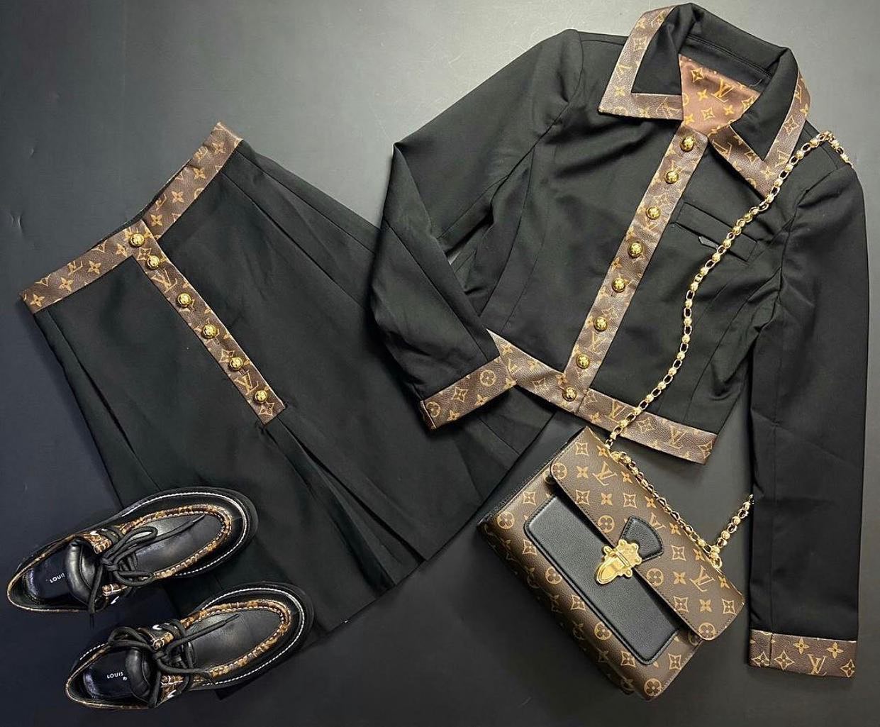 Женский костюм Louis Vuitton LUX-36015 представляет собой элегантный комплект, состоящий из жакета и юбки, выполненный в классическом черном цвете с узнаваемым принтом бренда. Дизайн костюма подчеркивает статус и изысканный вкус своей обладательницы, идеально подходит для создания утонченных образов.