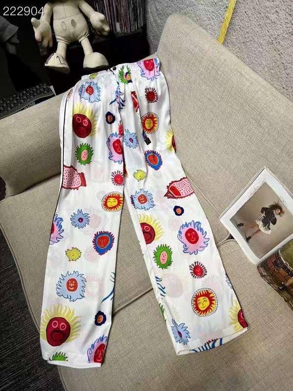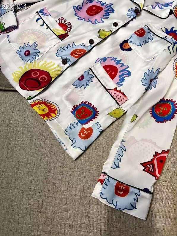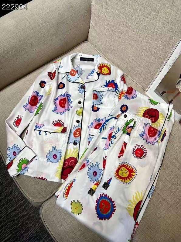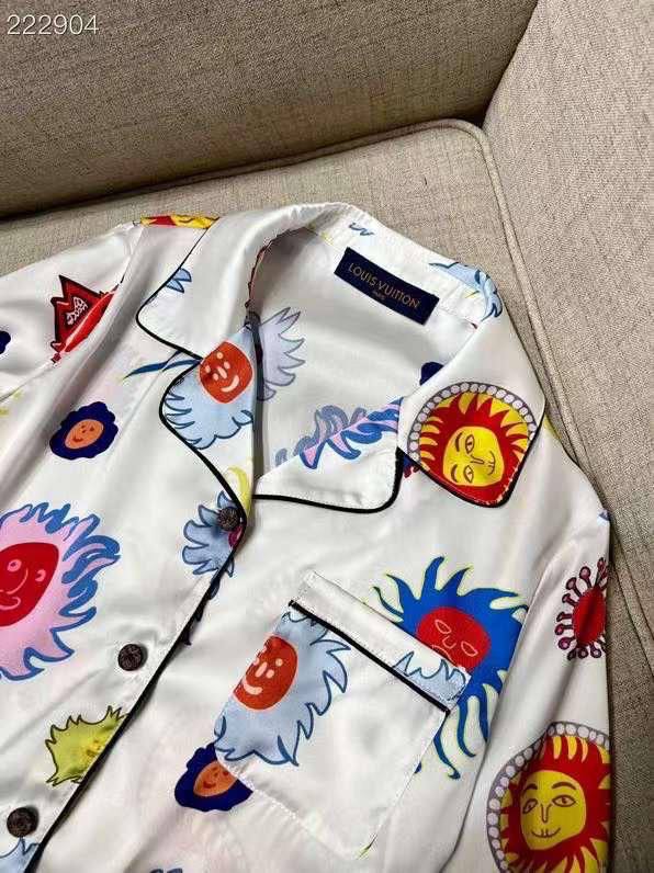 Костюм женский Louis Vuitton LUX-88728 - это яркий и стильный наряд, состоящий из рубашки и брюк. Костюм выполнен в светлых тонах с красочным принтом в виде цветов и солнца. Идеально подходит для создания яркого образа.