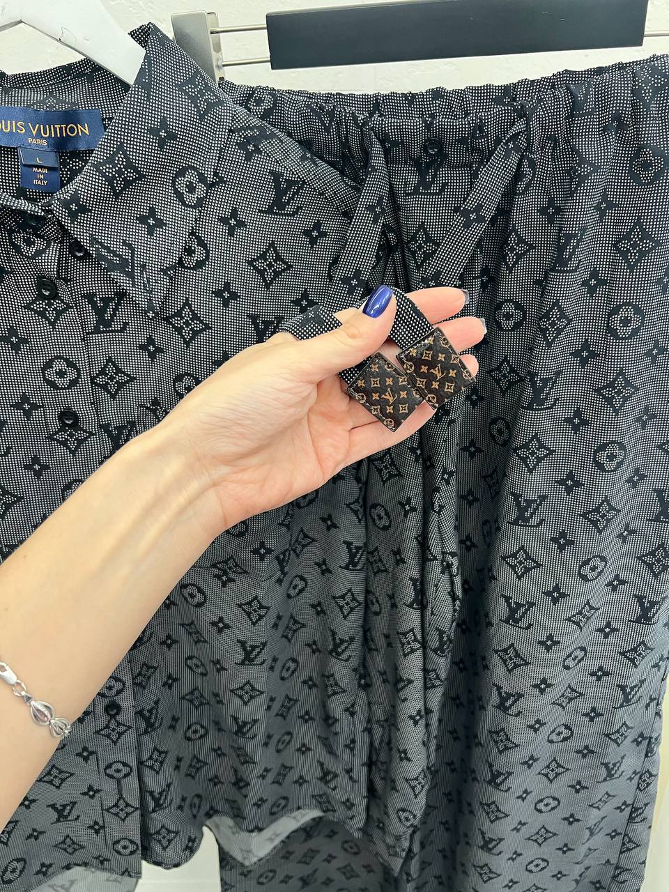 Костюм женский Louis Vuitton LUX-89715 - это элегантный ансамбль, который воплощает в себе стиль и узнаваемость бренда. Комплект включает в себя рубашку с длинными рукавами и брюки, выполненные в классическом цвете с фирменным узором. Этот костюм подойдет как для повседневного образа, так и для особых случаев, подчеркивая индивидуальность и вкус своей обладательницы.