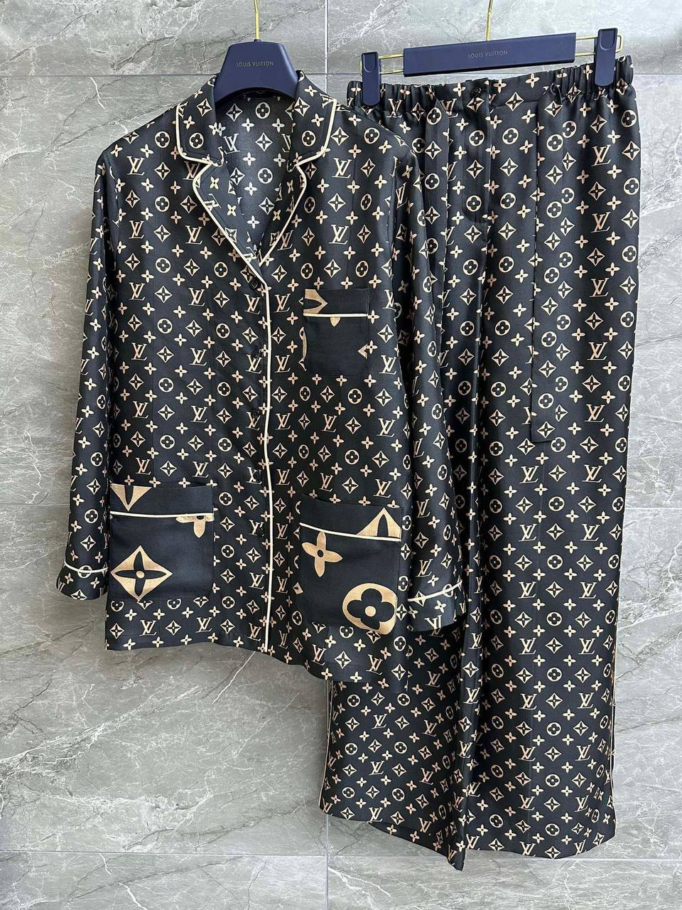Костюм женский Louis Vuitton LUX-91470 представляет собой элегантный комплект, который сочетает в себе стиль и комфорт. Костюм выполнен в классическом стиле, сочетая черный цвет с монограммой бренда. Текстура ткани создает ощущение роскоши и придает образу изысканность. Идеально подходит для повседневной носки или как часть домашней одежды.