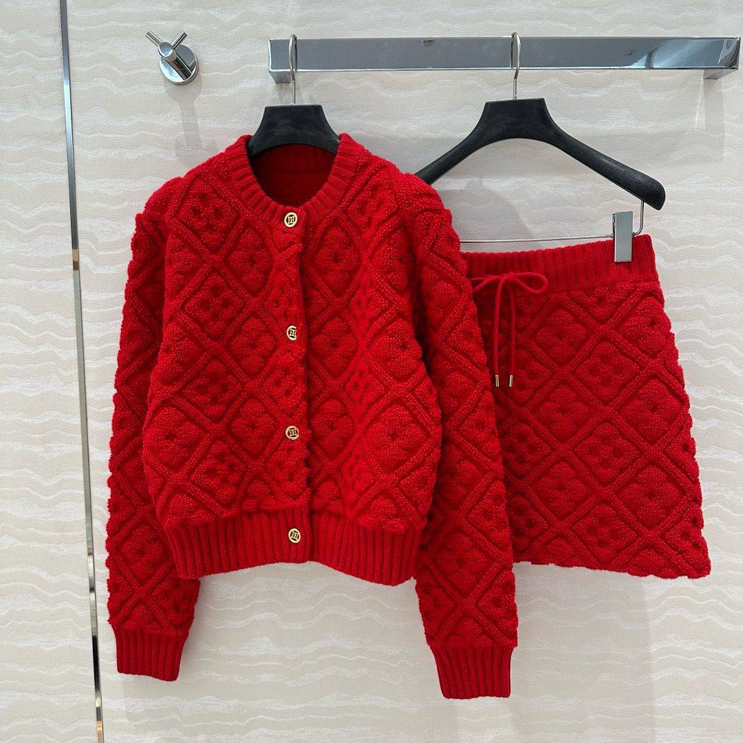 Костюм женский Louis Vuitton LUX-113708 — это воплощение элегантности и комфорта. Красный костюм состоит из кофты на пуговицах и юбки. Он станет отличным выбором для создания стильного и запоминающегося образа.