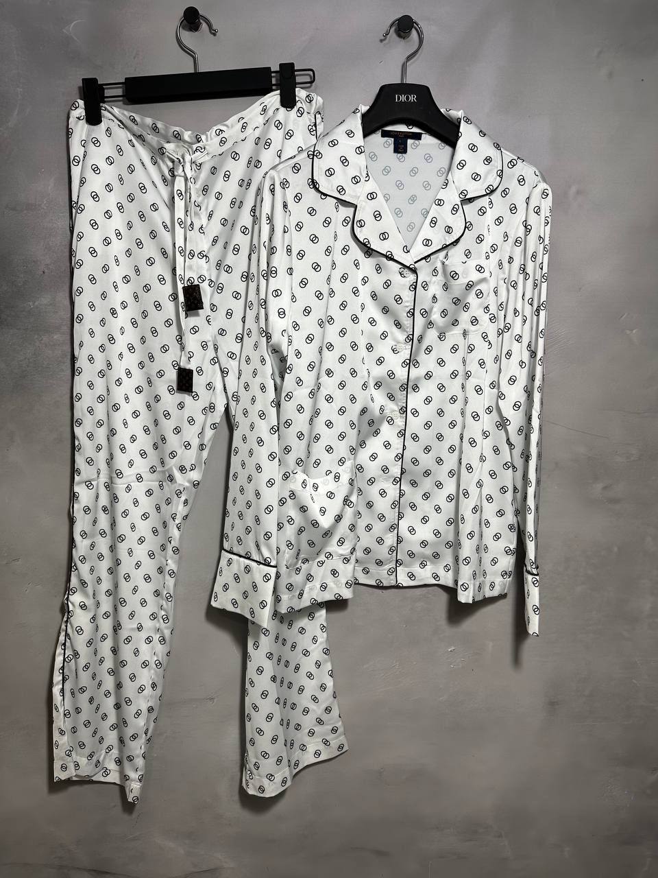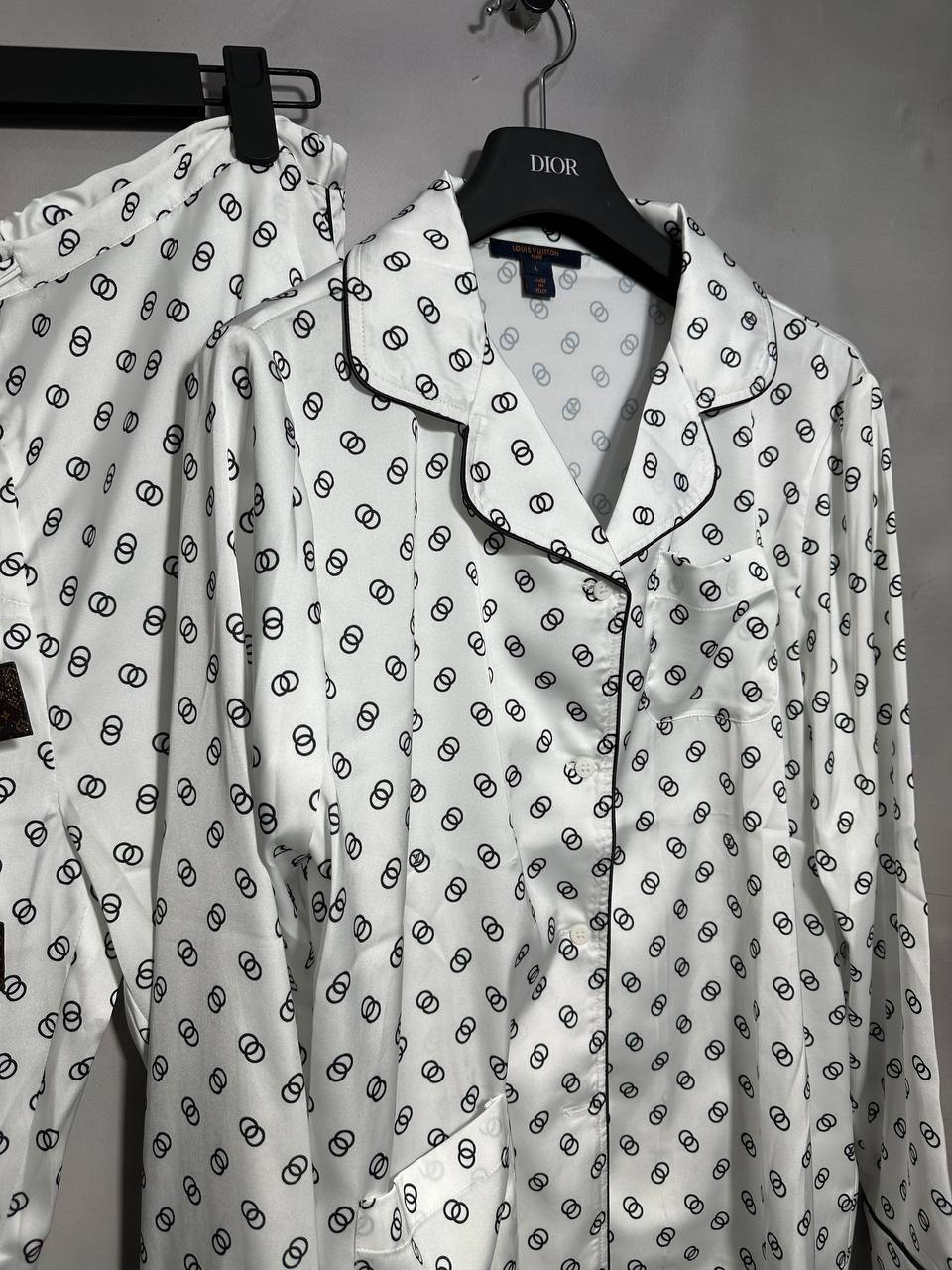 Костюм женский Louis Vuitton LUX-119626 представляет собой элегантный комплект одежды, выполненный в классическом стиле. Костюм состоит из рубашки с длинными рукавами и брюк. Белый цвет с черным принтом добавляет образу изысканности. Костюм идеально подходит для повседневной носки.