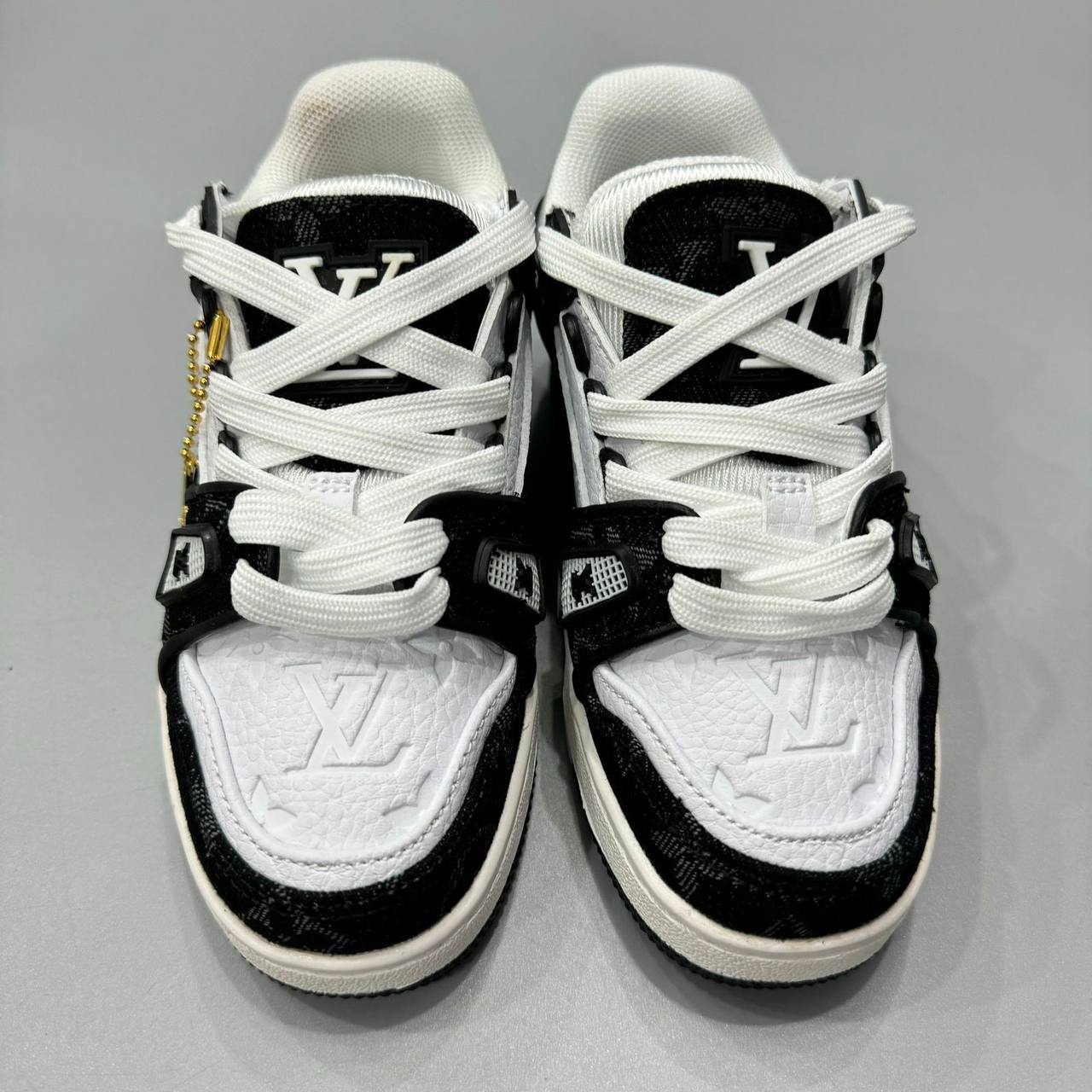 Кроссовки Louis Vuitton LUX-104812 представляют собой стильную модель, сочетающую в себе классику и современность. Черно-белая цветовая гамма, дополненная золотистыми элементами, делает кроссовки узнаваемыми и элегантными. Идеальный выбор для создания модных образов в повседневной жизни.