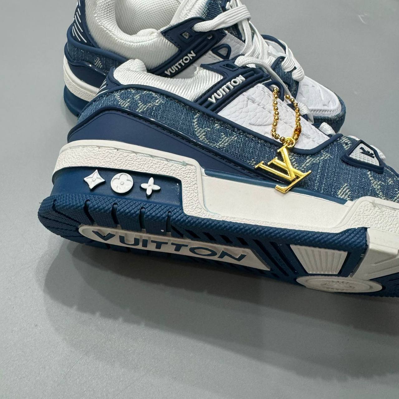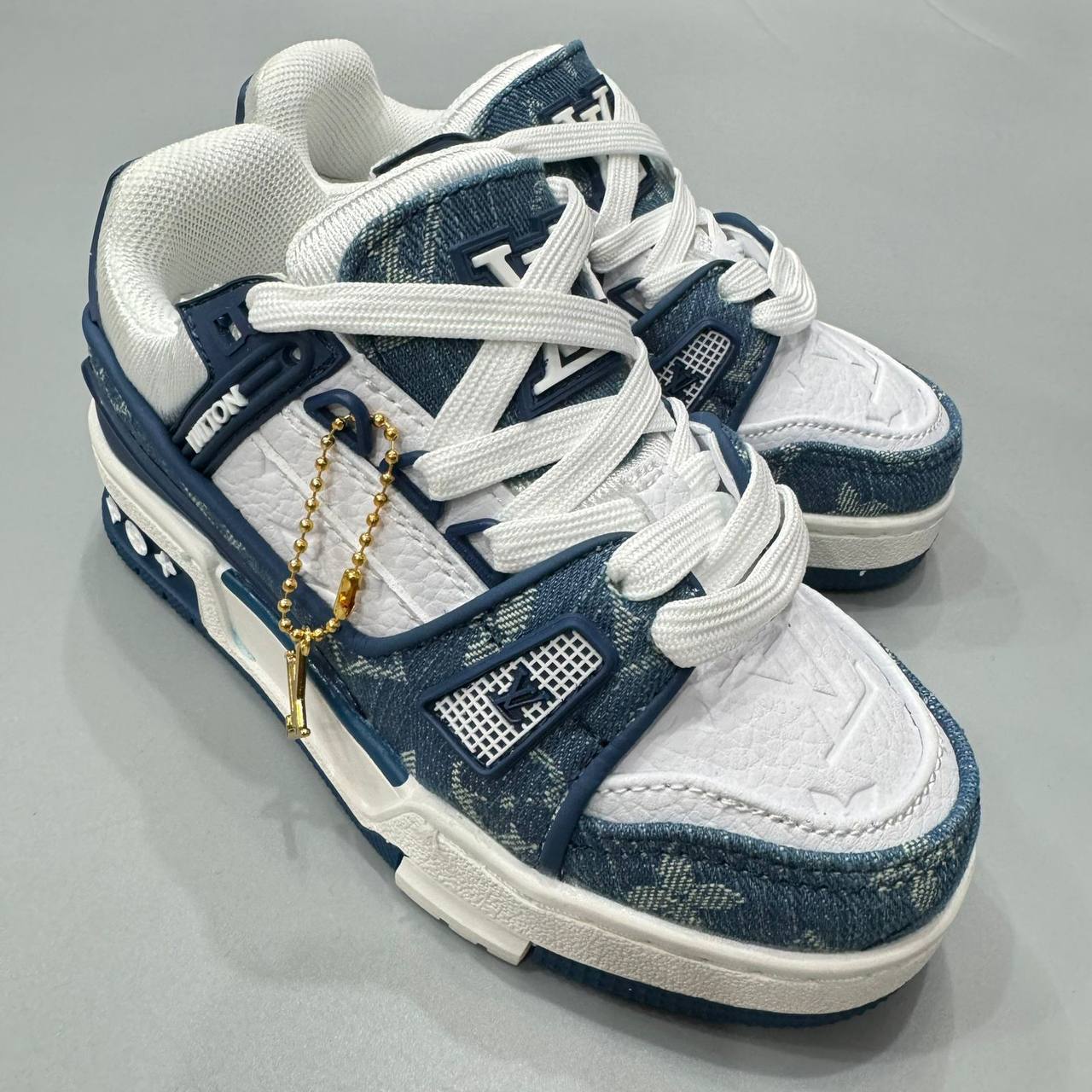 Кроссовки Louis Vuitton LUX-104813 – это стильная обувь для повседневной носки, выполненная в комбинированном стиле. Преобладающие цвета – белый, синий и джинсовый принт. Дизайн кроссовок сочетает в себе современные тенденции и узнаваемый стиль бренда, подчеркивая индивидуальность владельца.