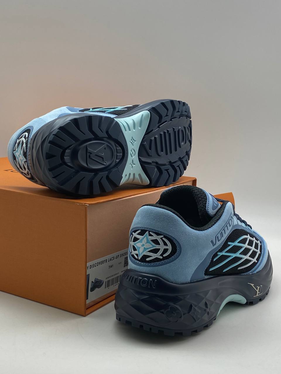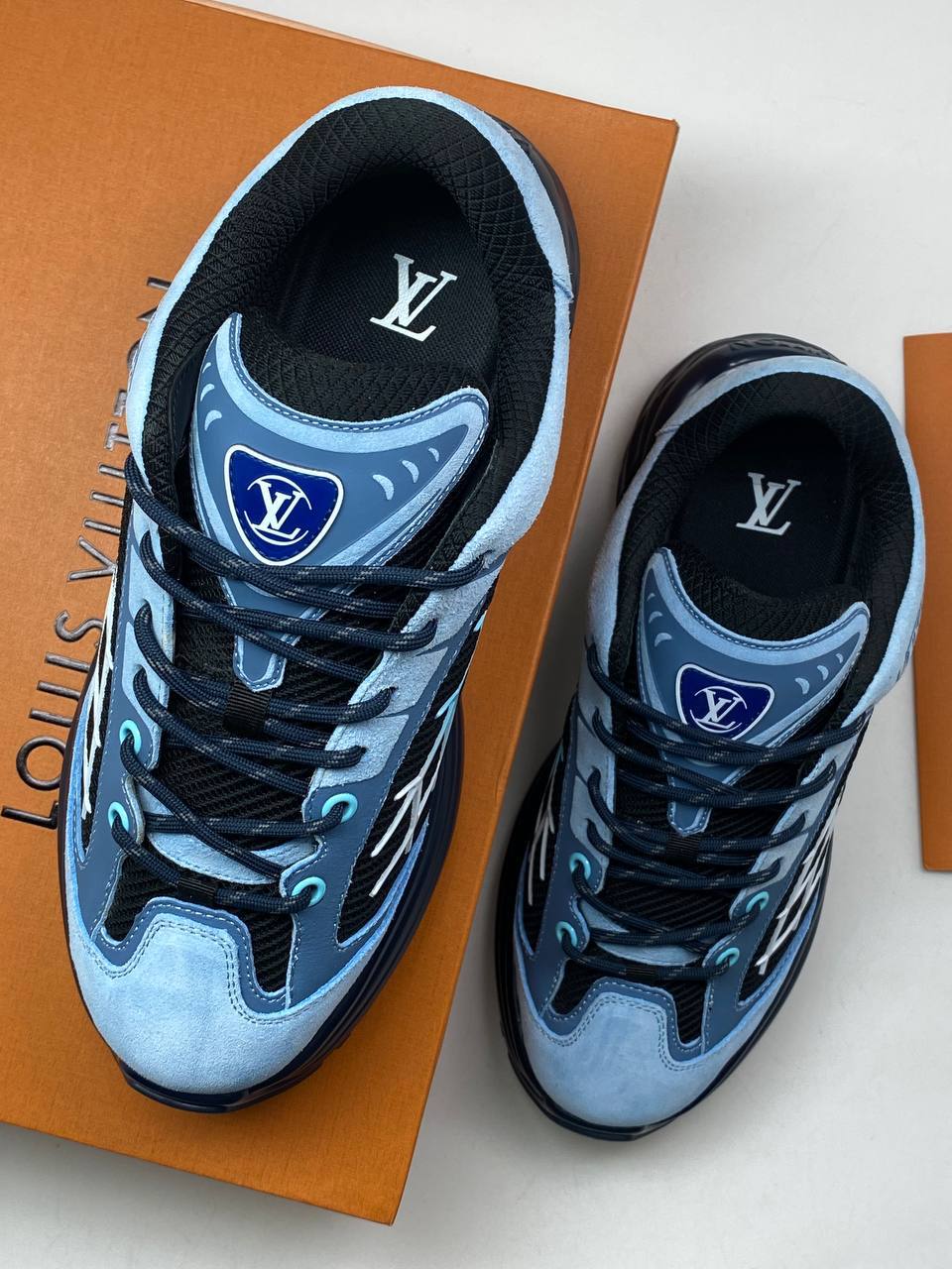 Кроссовки Louis Vuitton LUX-111333 – это стильная обувь в спортивном стиле. Кроссовки выполнены в сочетании голубых и чёрных оттенков с текстурированной подошвой, которая обеспечивает отличную амортизацию. Идеальный выбор для тех, кто ценит комфорт и современный дизайн.