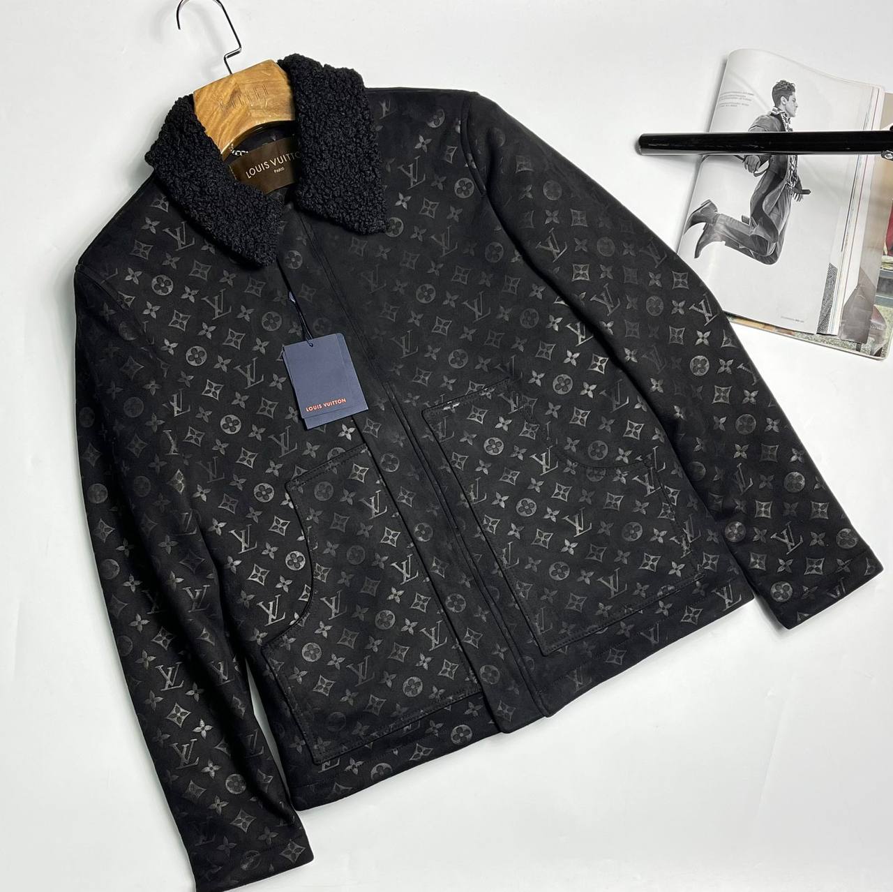 Куртка мужская Louis Vuitton LUX-77714 — это элегантная куртка в классическом стиле от известного бренда. Черный цвет, текстура с фирменным узором монограммы и воротник из шерсти придают изделию изысканный вид. Идеально подходит для создания стильного образа в прохладную погоду.