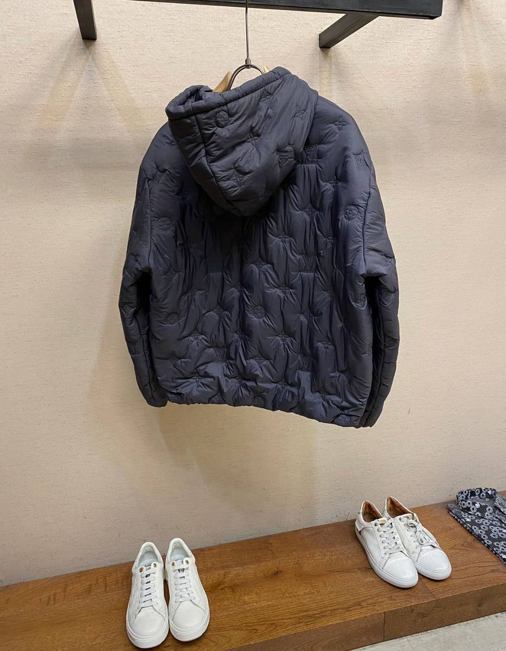 Мужская куртка Louis Vuitton LUX-96822 – стильная и практичная верхняя одежда для современного мужчины. Куртка выполнена в темно-синем цвете, имеет стеганую текстуру и капюшон. Предназначена для защиты от холода и создания комфортного образа.