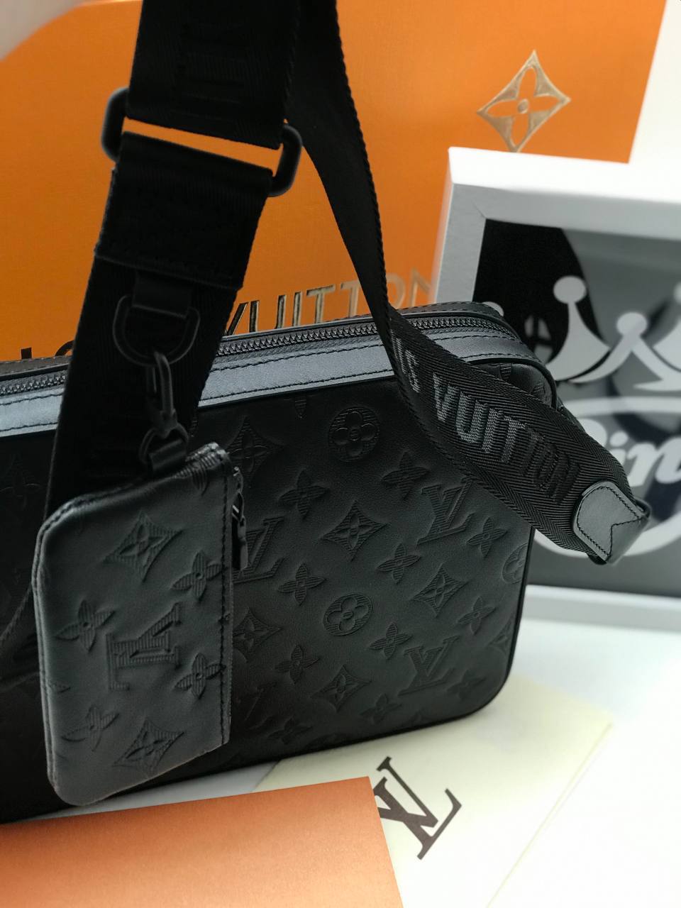 Мессенджер Louis Vuitton LUX-98340 — стильная сумка через плечо от известного бренда. Черный цвет и текстурированный узор создают элегантный и современный образ. Идеально подходит для повседневного использования, сочетая в себе практичность и роскошь.