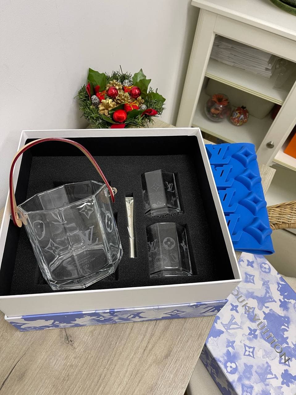 Набор Louis Vuitton LUX-54510 представляет собой элегантный комплект для напитков, выполненный в фирменном стиле бренда. Этот набор включает в себя изысканный стеклянный графин с узнаваемым монограммным узором Louis Vuitton и два стакана, также украшенных принтом. Компактный дизайн и премиальные материалы делают его идеальным дополнением к домашнему бару или элегантным подарком.