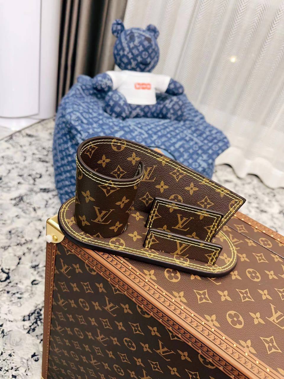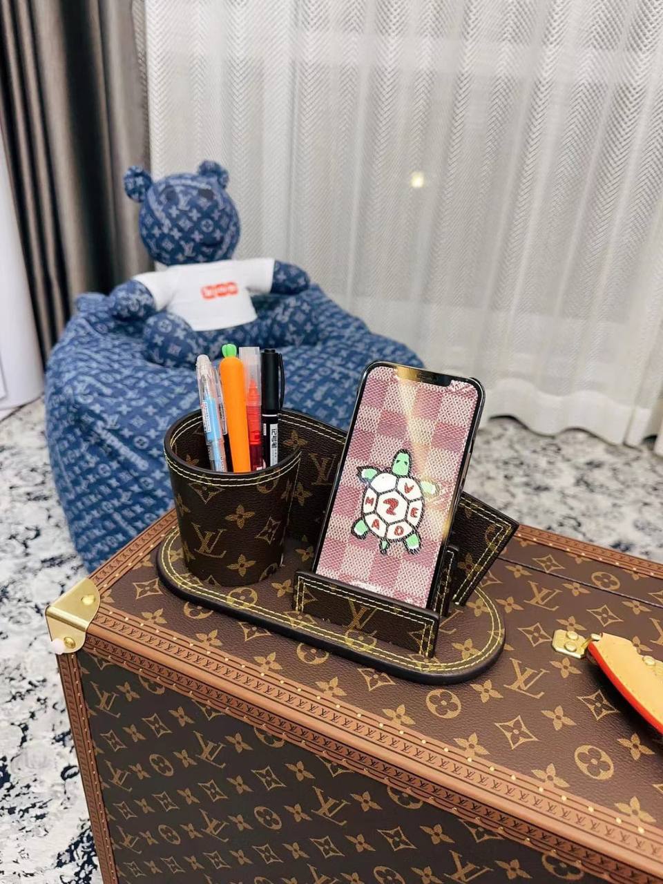 Набор Louis Vuitton LUX-95051 представляет собой стильный аксессуар для хранения и организации личных вещей, выполненный в фирменном стиле бренда. Набор состоит из подставки для телефона и стакана для канцелярских принадлежностей, выполненных в классической цветовой гамме бренда с узнаваемым узором. Этот набор станет прекрасным дополнением к любому интерьеру.