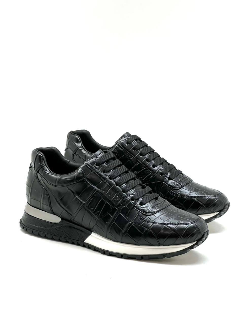 Натуральная кожа крокодила. Louis Vuitton LUX-74000 - это стильные кроссовки черного цвета, выполненные из натуральной кожи крокодила. Текстура кожи придает обуви роскошный вид, а элегантный дизайн позволяет сочетать их как с повседневной, так и с более формальной одеждой.