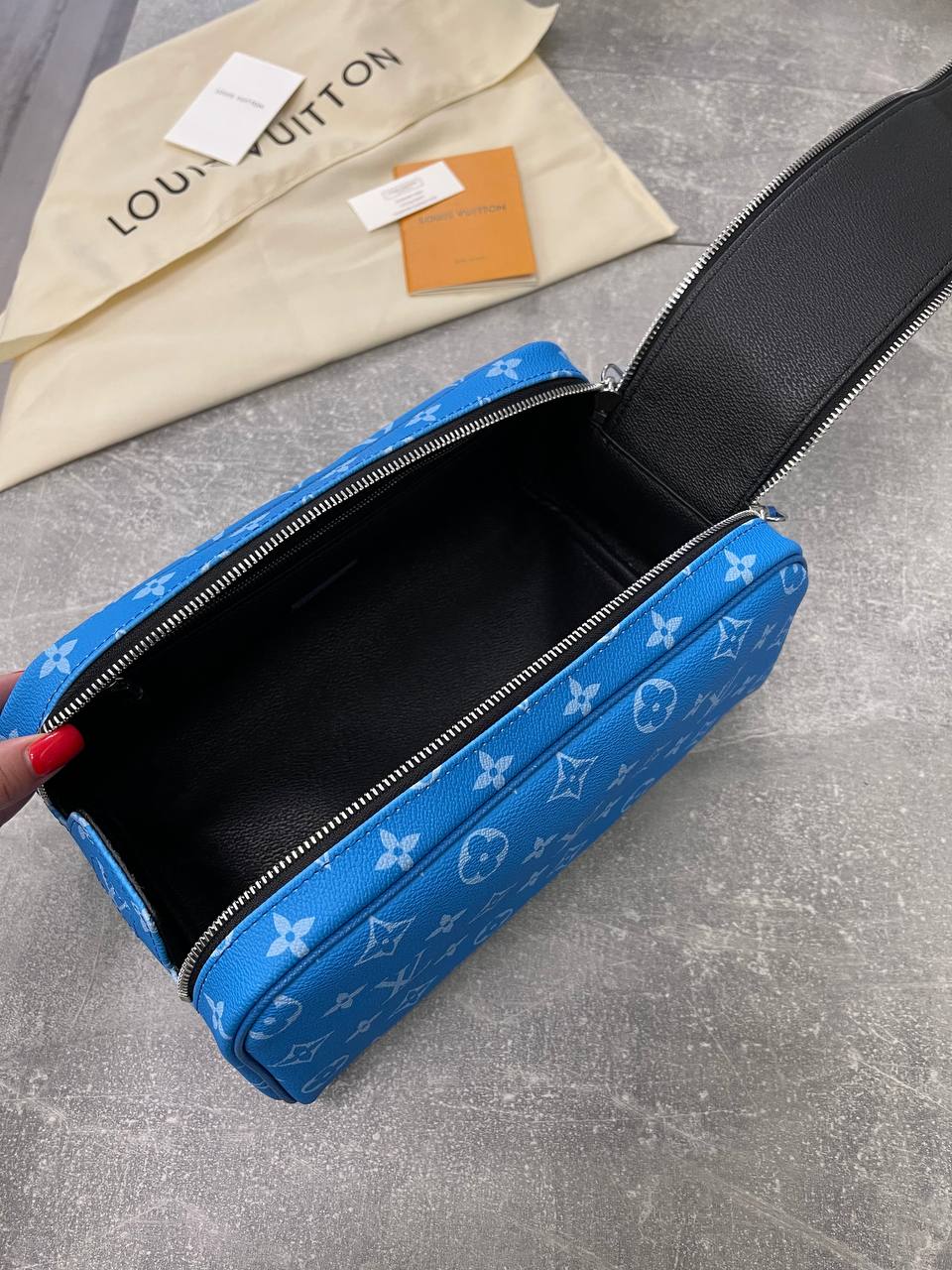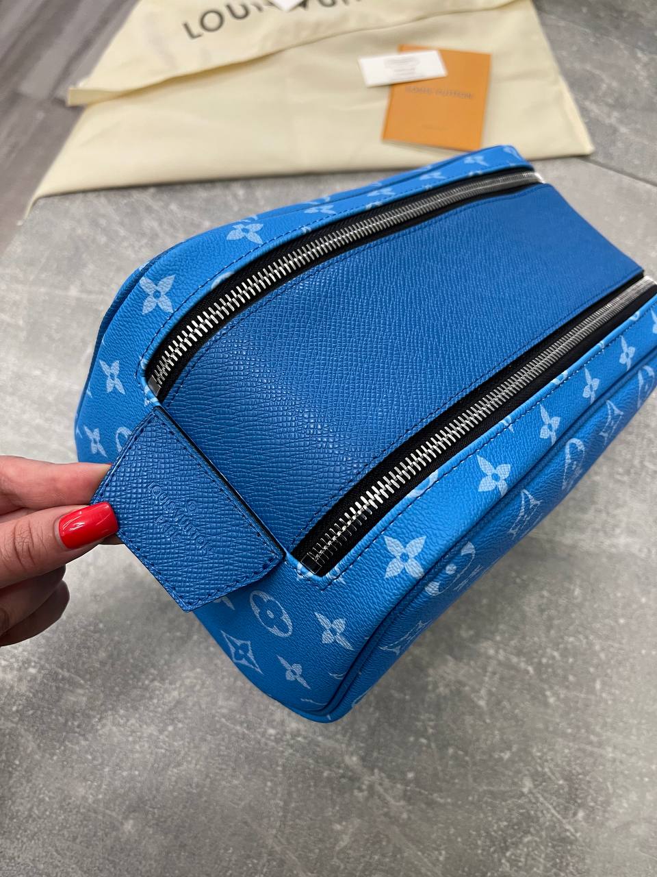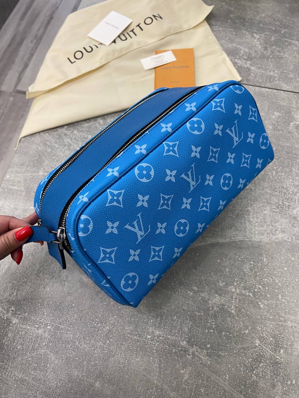 Несессер Louis Vuitton LUX-102874 — это стильный аксессуар, который сочетает в себе элегантность и функциональность. Он выполнен в ярком синем цвете с фирменным узором бренда. Этот несессер идеально подходит для хранения косметики, туалетных принадлежностей или других мелочей.