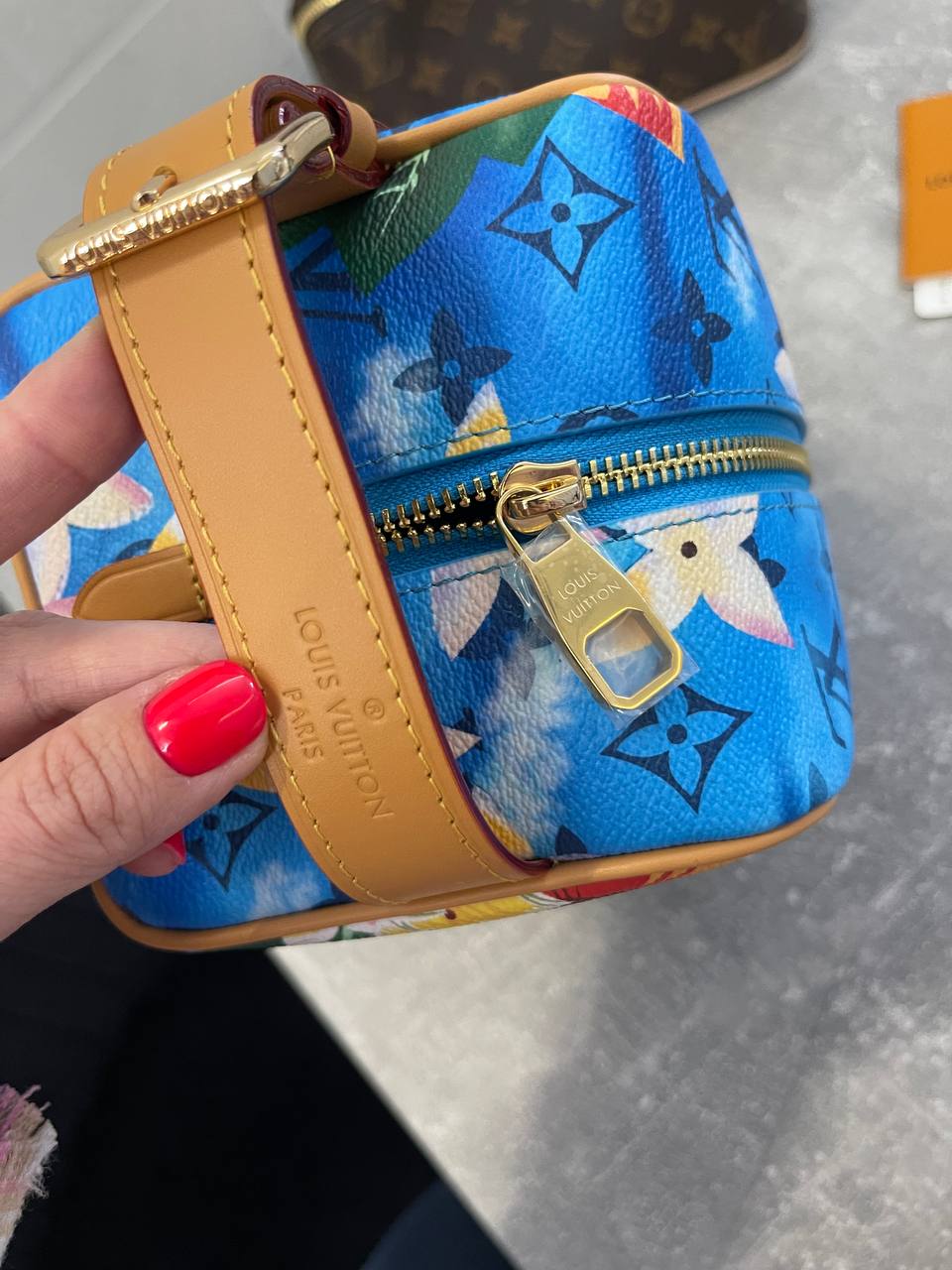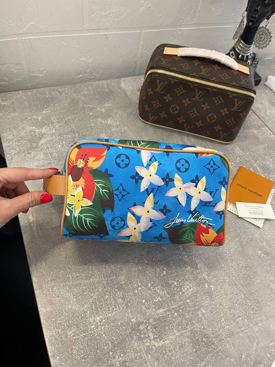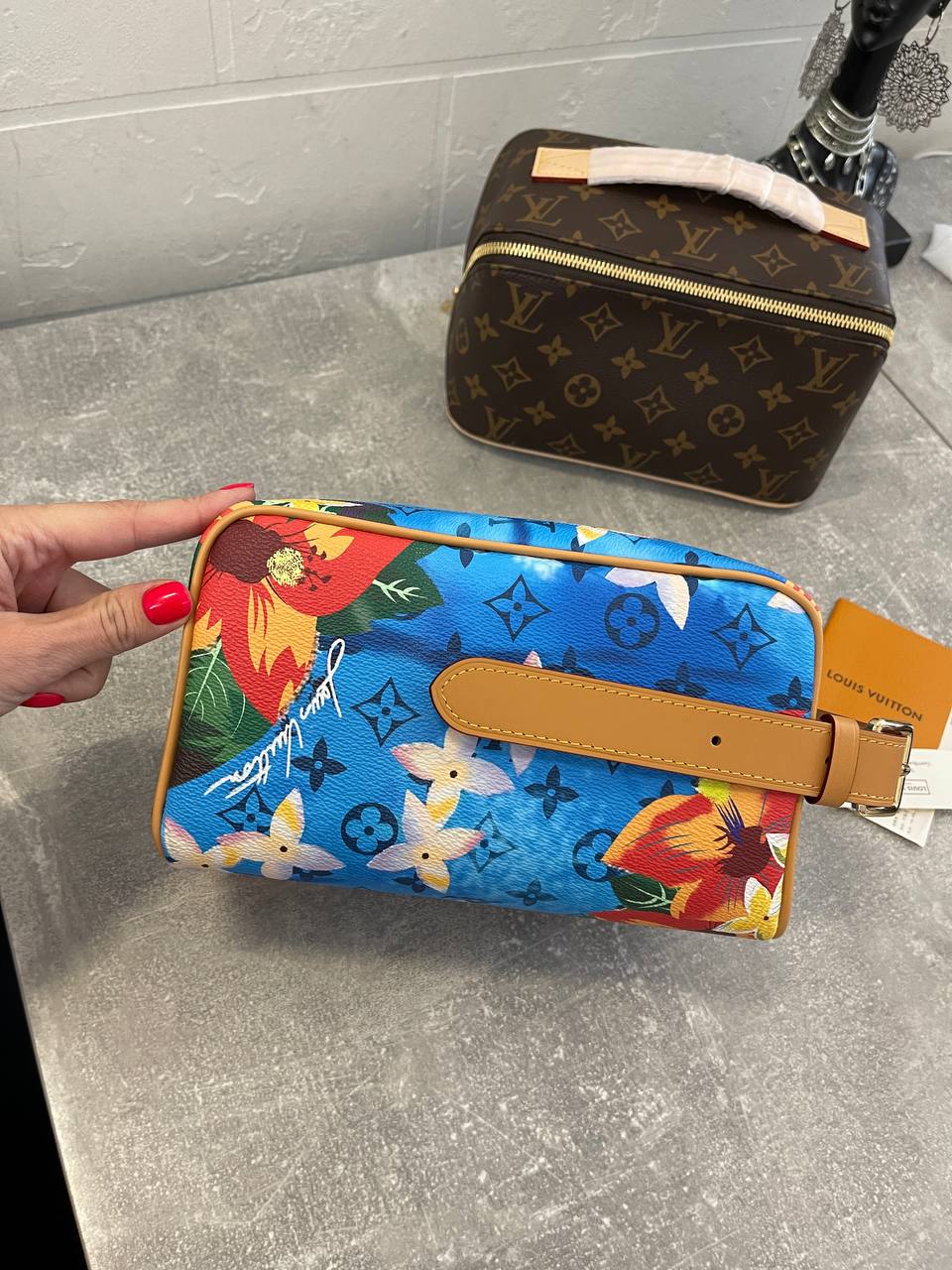 Несессер Louis Vuitton LUX-110427 - это стильный аксессуар от известного бренда. Он выполнен в ярком цветочном принте на фоне голубого цвета, что делает его привлекательным и запоминающимся. Этот несессер идеально подойдет для хранения косметики или других мелких предметов, подчеркивая индивидуальность владельца.