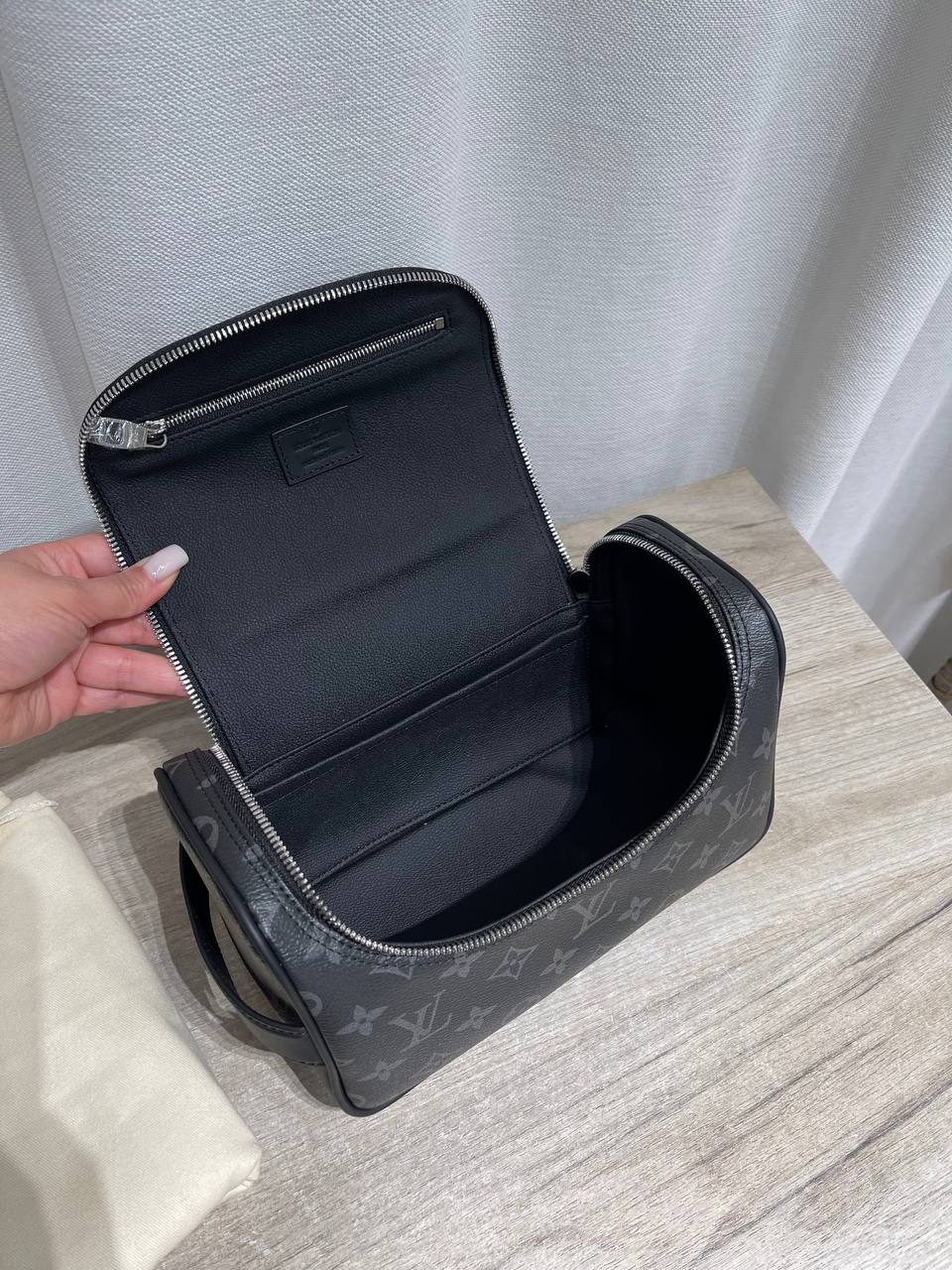 Элегантный несессер Louis Vuitton – стильный и практичный аксессуар для хранения косметики и туалетных принадлежностей. Он сочетает в себе классический дизайн и современные материалы.