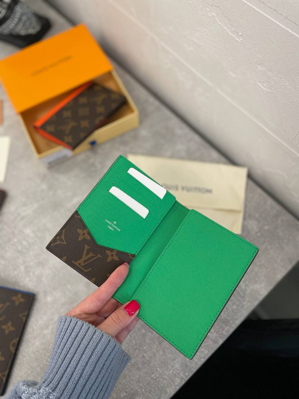 Обложка на паспорт Louis Vuitton LUX-103773 – это стильный и практичный аксессуар, выполненный в узнаваемом дизайне бренда. Она сочетает в себе элегантность и функциональность, подчеркивая статус владельца. Обложка выполнена в классическом коричневом цвете с фирменным узором Louis Vuitton и дополнена яркой зеленой вставкой.