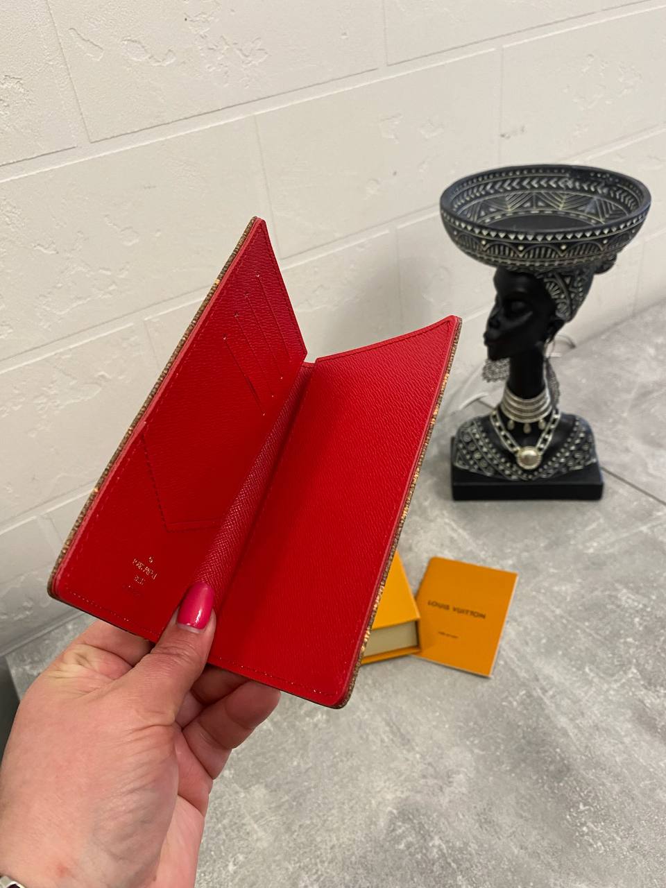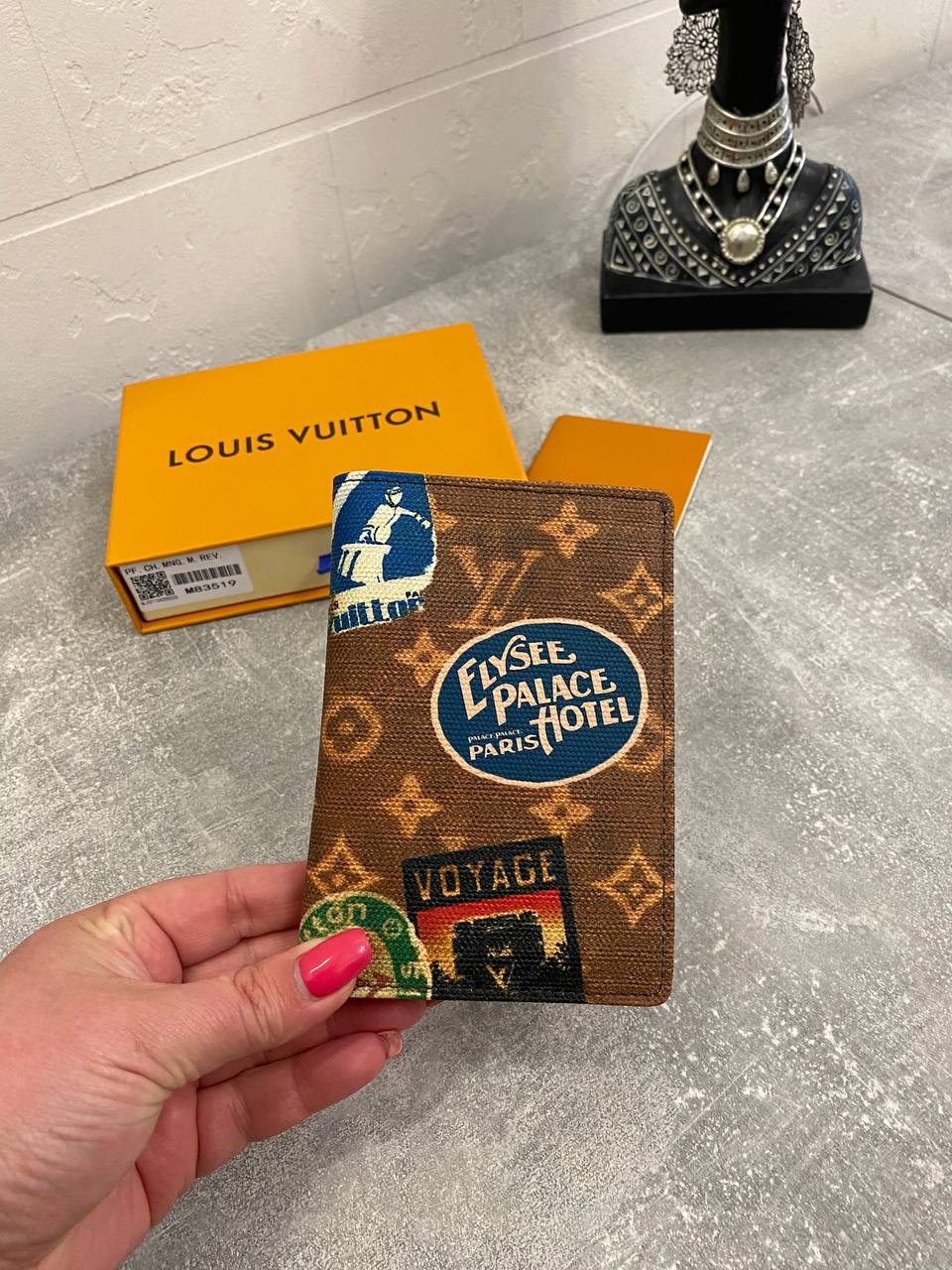 Обложка на паспорт Louis Vuitton LUX-106395 выполнена в узнаваемом стиле бренда. Обложка коричневого цвета с нанесенными патчами, в том числе надписями и логотипом бренда. Предназначена для хранения паспорта и подчеркивает статус владельца.