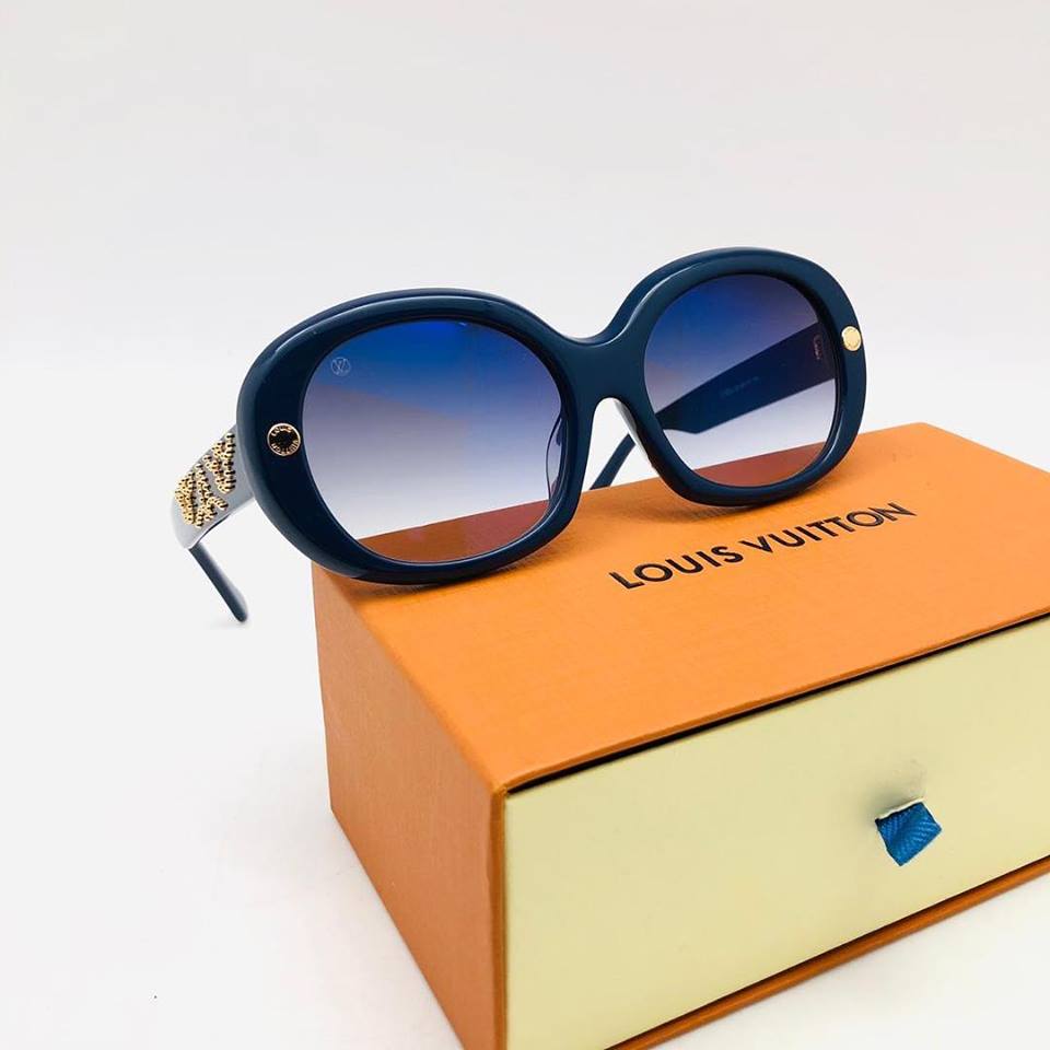 Стильные женские солнцезащитные очки Louis Vuitton LUX-12257 с массивной темно-синей оправой и градиентными линзами от синего до серого. Дужки украшены золотистым орнаментом, придающим изделию роскошный вид. Идеальный аксессуар для создания элегантного и современного образа, подчеркивающий ваш утонченный вкус.