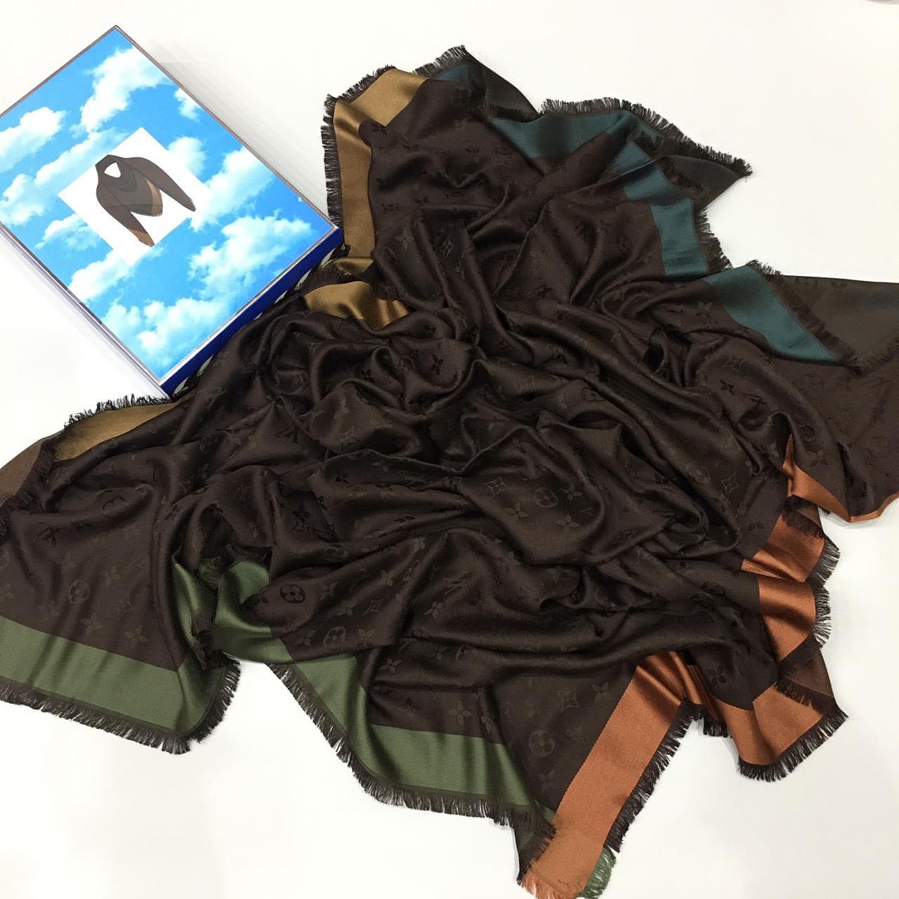 Палантин Louis Vuitton LUX-39124 представляет собой элегантный аксессуар, выполненный в стиле бренда. Его темно-коричневый цвет с контрастными полосами по краям придает изделию изысканность. Этот палантин станет стильным дополнением к любому образу, будь то повседневный или вечерний наряд.