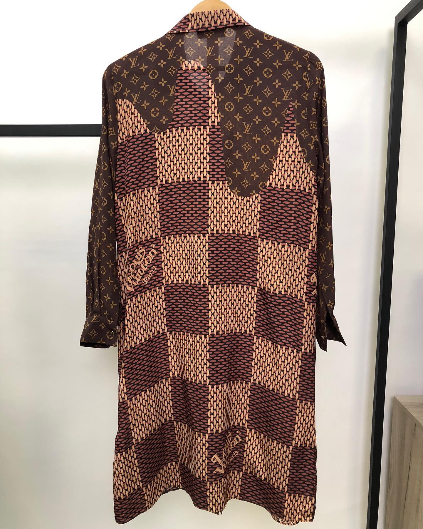 Шикарное платье-рубашка Louis Vuitton LUX-39880 – это идеальный выбор для ценителей эксклюзивного стиля и безупречного качества. Изделие выполнено в эффектной расцветке, сочетающей монограмму бренда с геометрическим принтом, создавая роскошный и узнаваемый образ. Данная модель подойдет как для повседневных, так и для особых случаев, подчеркивая вашу индивидуальность.