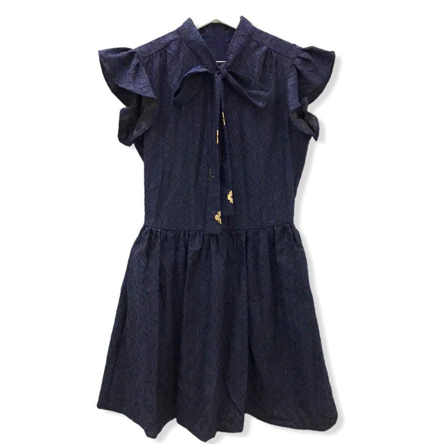Элегантное платье Louis Vuitton LUX-50374 выполнено в темно-синем цвете с узнаваемым монограммным узором бренда. Модель отличается женственным силуэтом, акцентированной талией и пышной юбкой, а также оригинальными деталями, такими как объемные рюши на рукавах и галстук-бант у воротника. Это платье идеально подойдет для создания изысканных вечерних или торжественных образов, подчеркивая статус и утонченный вкус своей обладательницы.