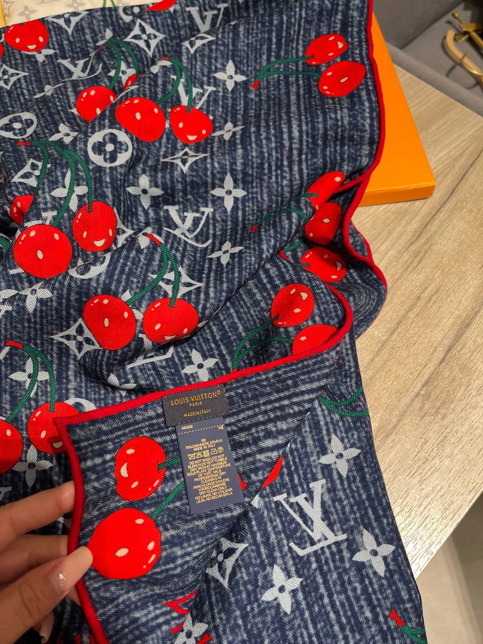 Платок Louis Vuitton LUX-122839 – это стильный аксессуар, который дополнит любой образ, добавляя ему нотку элегантности и роскоши. Он имеет интересный дизайн с логотипом бренда и вишнями, который подойдет для любого случая.
