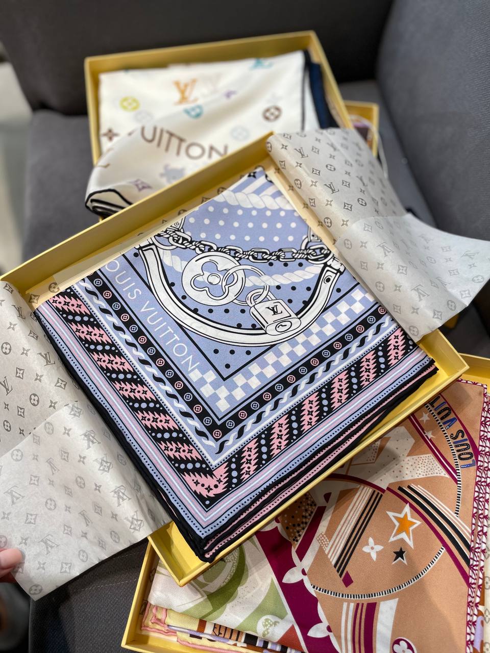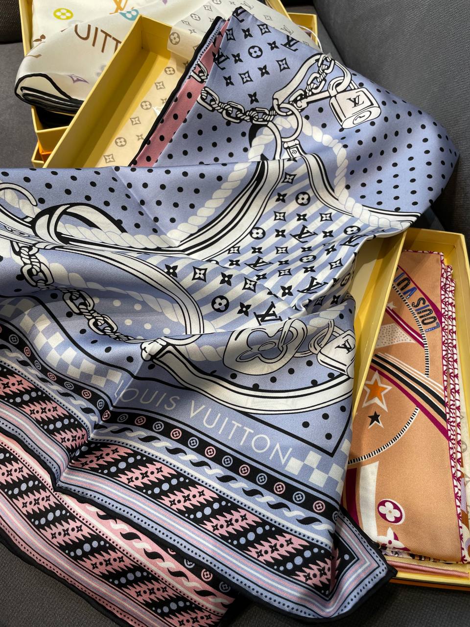 Платок Louis Vuitton - это элегантный аксессуар, который подчеркнет ваш стиль и придаст изысканность образу. Он идеально подойдет для создания неповторимых образов.