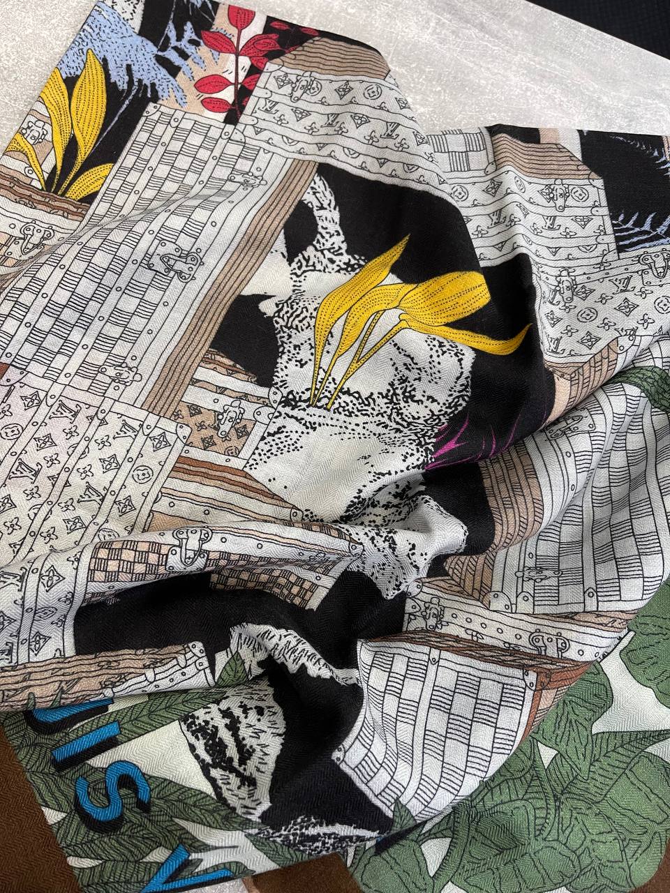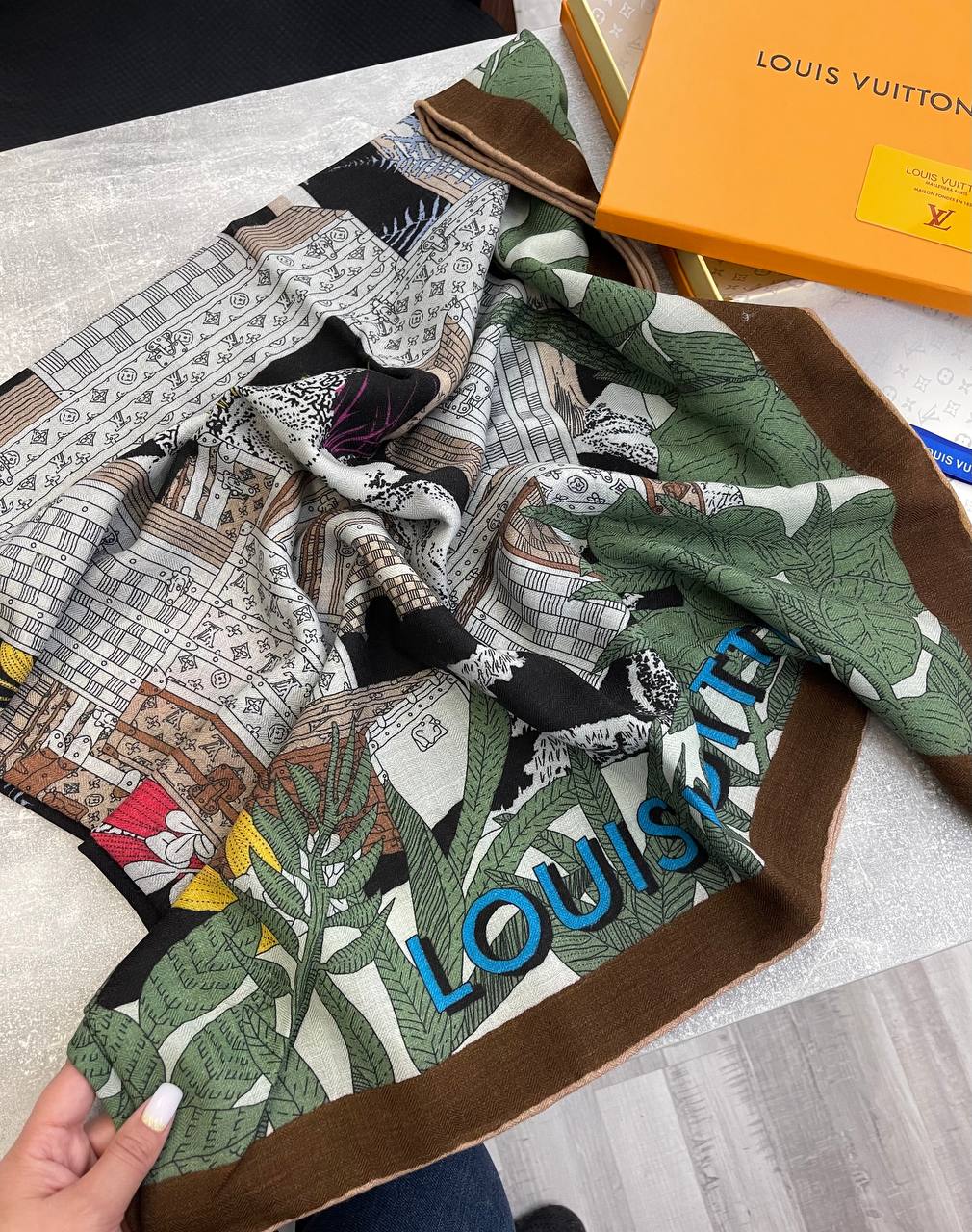 Платок Louis Vuitton LUX-95504 представляет собой изысканный аксессуар, сочетающий в себе стиль и элегантность. Этот платок выполнен в уникальном дизайне, сочетающем различные узоры и принты, с акцентом на растительные мотивы и надпись бренда. Платок идеально подходит для создания утонченных образов и может использоваться как шарф, платок на шею или аксессуар для волос.