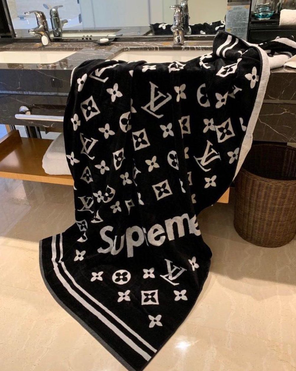 ПЛЯЖНОЕ ПОЛОТЕНЦЕ MONOGRAM CLASSIC Louis Vuitton LUX-31071 – это роскошное пляжное полотенце, выполненное в характерном для Louis Vuitton стиле. Черное полотно украшено культовым принтом Monogram, дополненным надписью "Supeme", что придает ему уникальный и стильный вид. Это полотенце станет идеальным аксессуаром для отдыха на пляже, у бассейна или в спа-салоне.