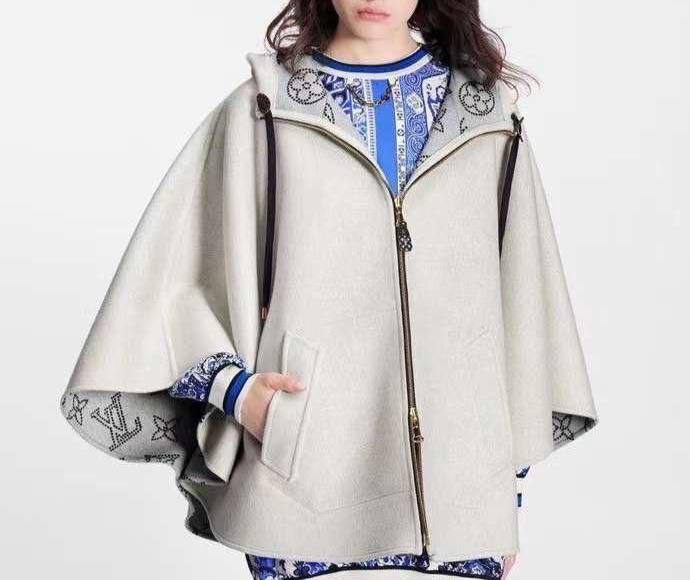 Пончо Louis Vuitton LUX-94228 – это элегантная верхняя одежда в стиле кэжуал. Пончо выполнено в кремовом цвете, с отделкой, демонстрирующей фирменный узор бренда на манжетах. Предназначено для создания стильного и комфортного образа в прохладную погоду.