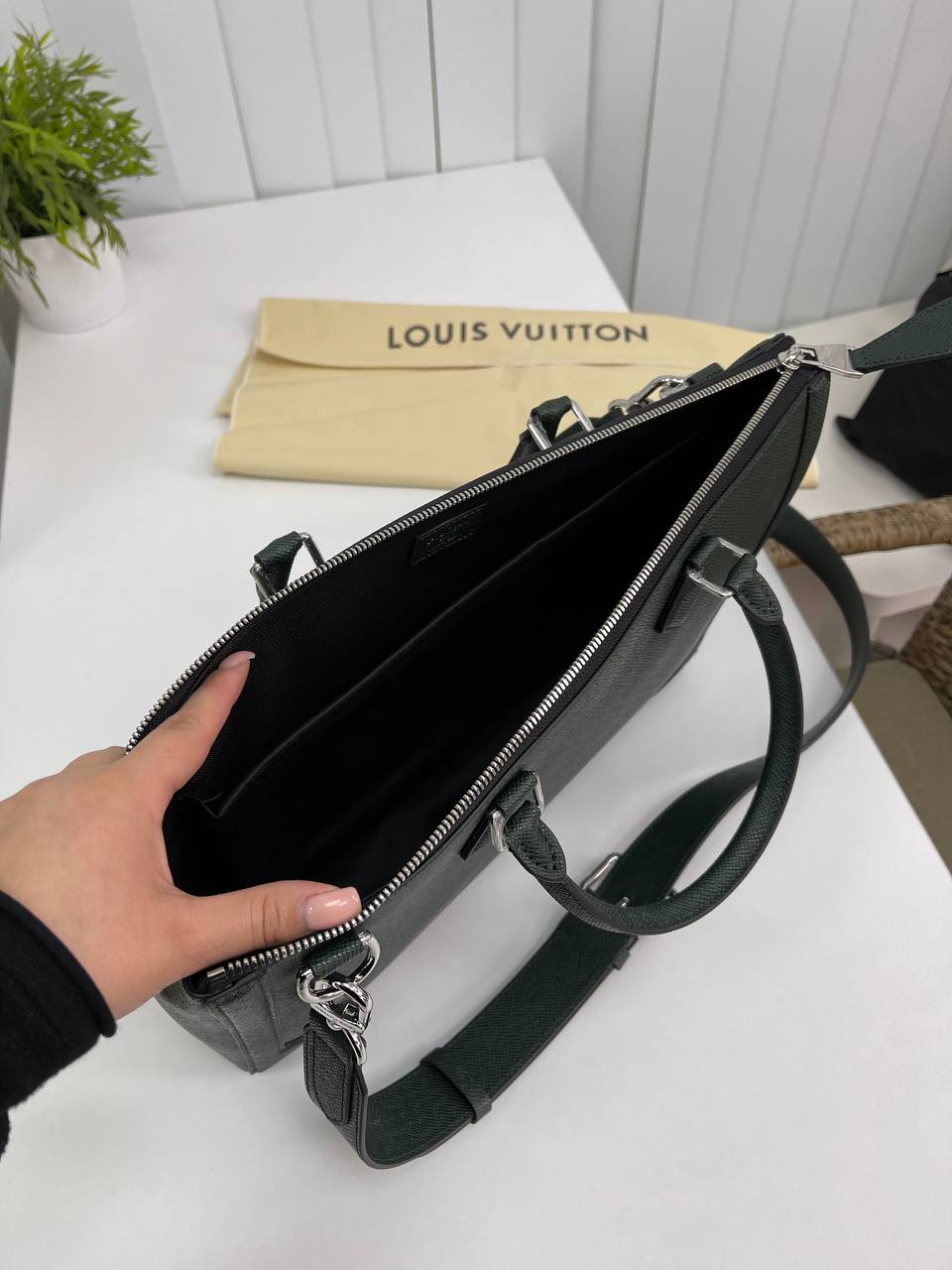 Портфель Louis Vuitton LUX-83561, представленный на изображении, – это элегантный аксессуар в классическом стиле. Темно-зеленый цвет и текстурированная поверхность придают ему изысканный вид. Этот портфель предназначен для повседневного использования и подчеркнет ваш статус.