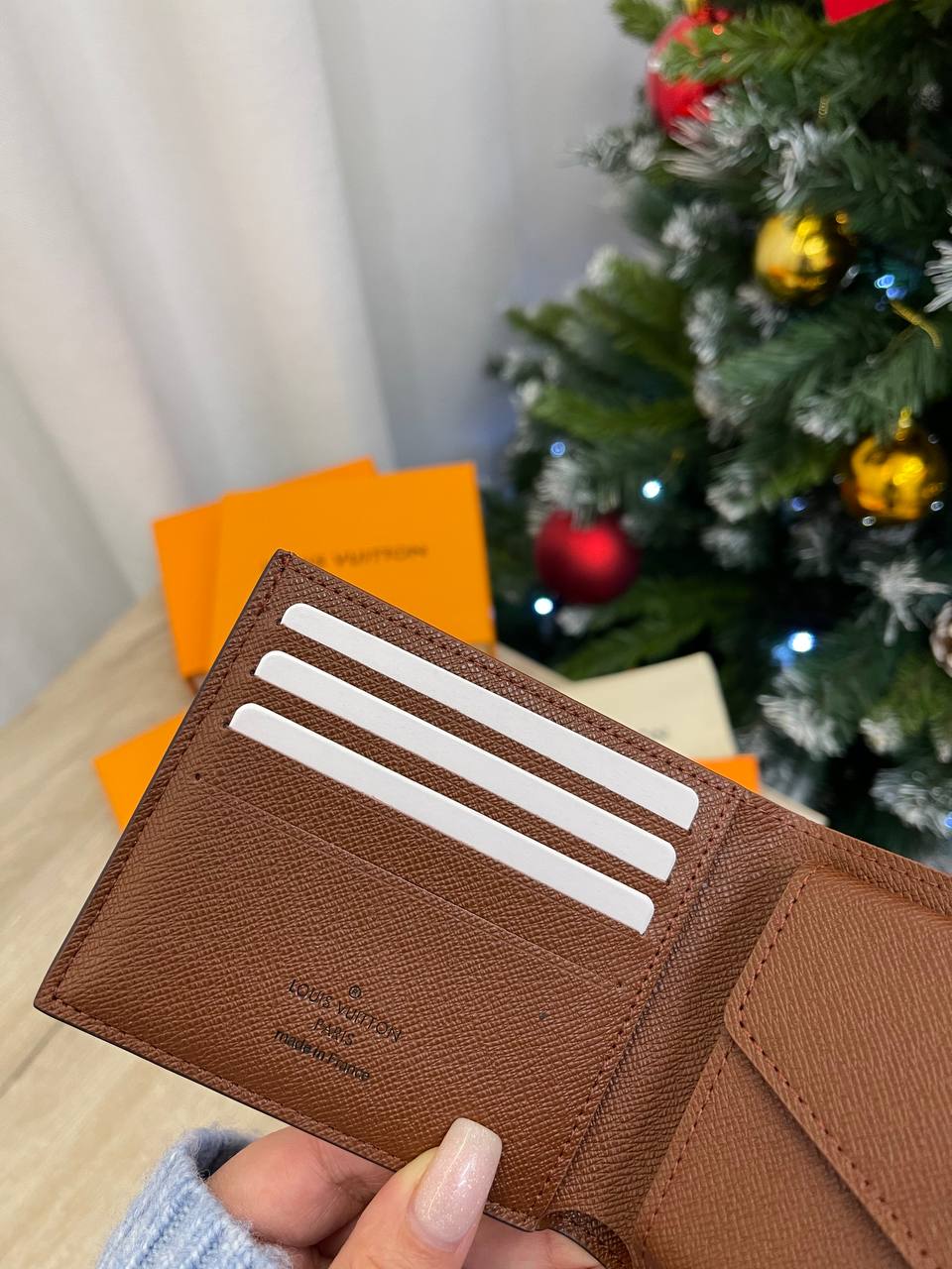 Портмоне Louis Vuitton LUX-99719 — это элегантный аксессуар, выполненный в фирменном стиле бренда. Оно имеет классический дизайн, узнаваемый узор и компактный размер, который идеально подходит для хранения карт, купюр и мелочи. Это портмоне станет отличным дополнением к любому образу.