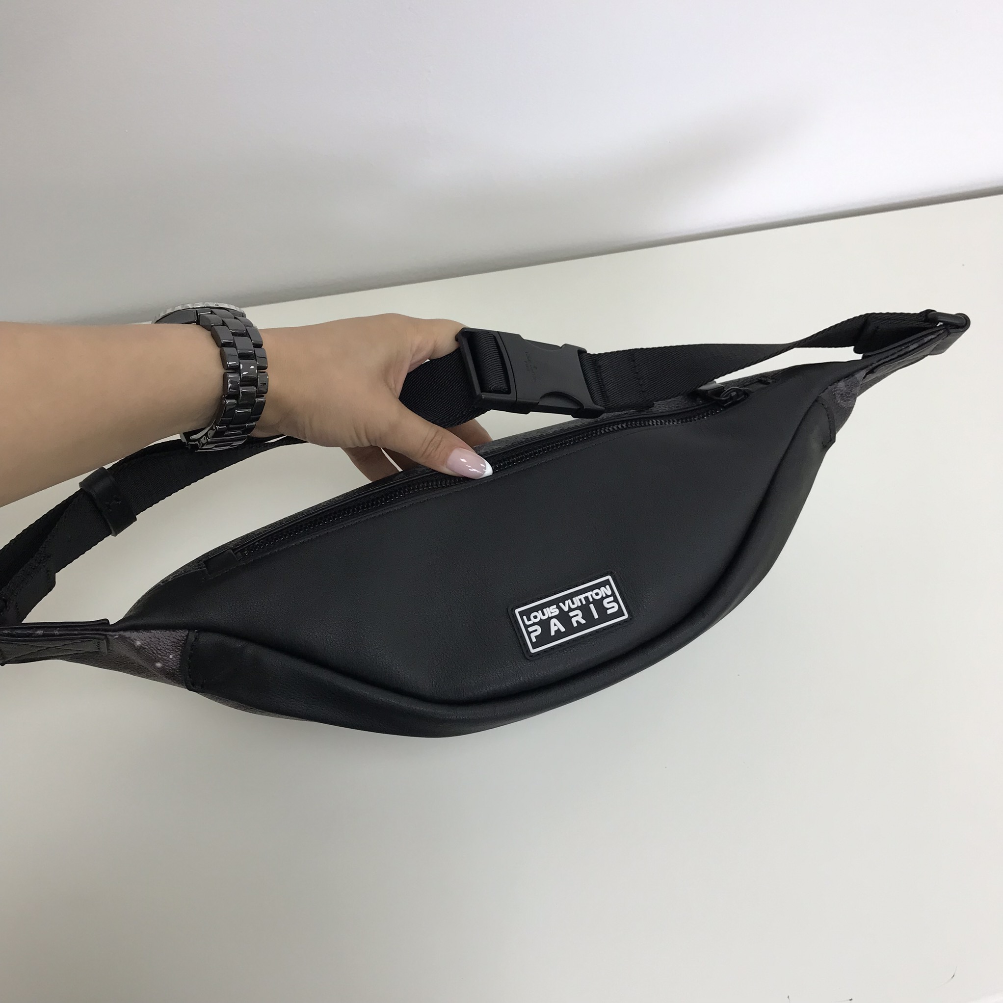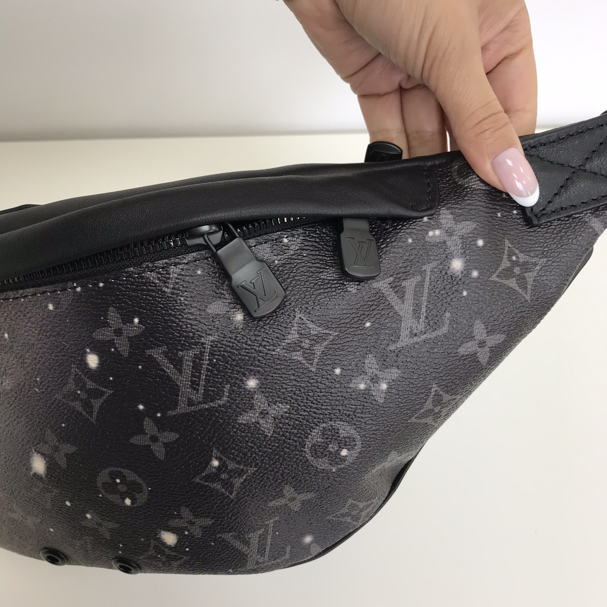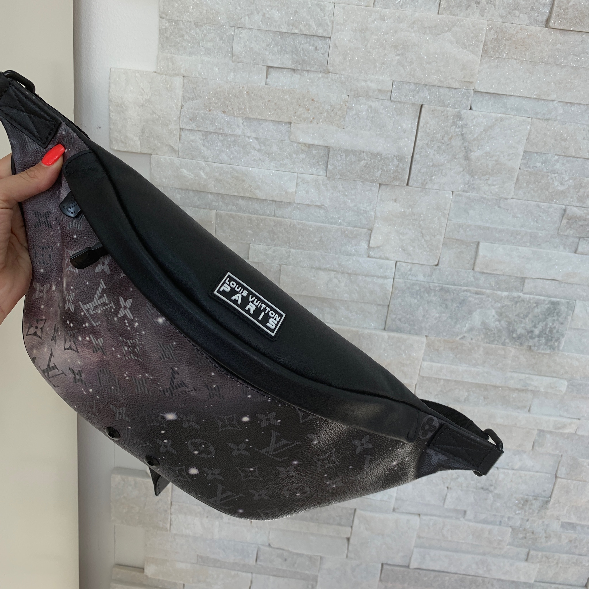 Поясная сумка Louis Vuitton СЖ-492 представляет собой стильный аксессуар с уникальным дизайном. Монограммный принт бренда сочетается с эффектным космическим мотивом, создавая запоминающийся образ. Черные кожаные вставки и ремень дополняют эстетику.