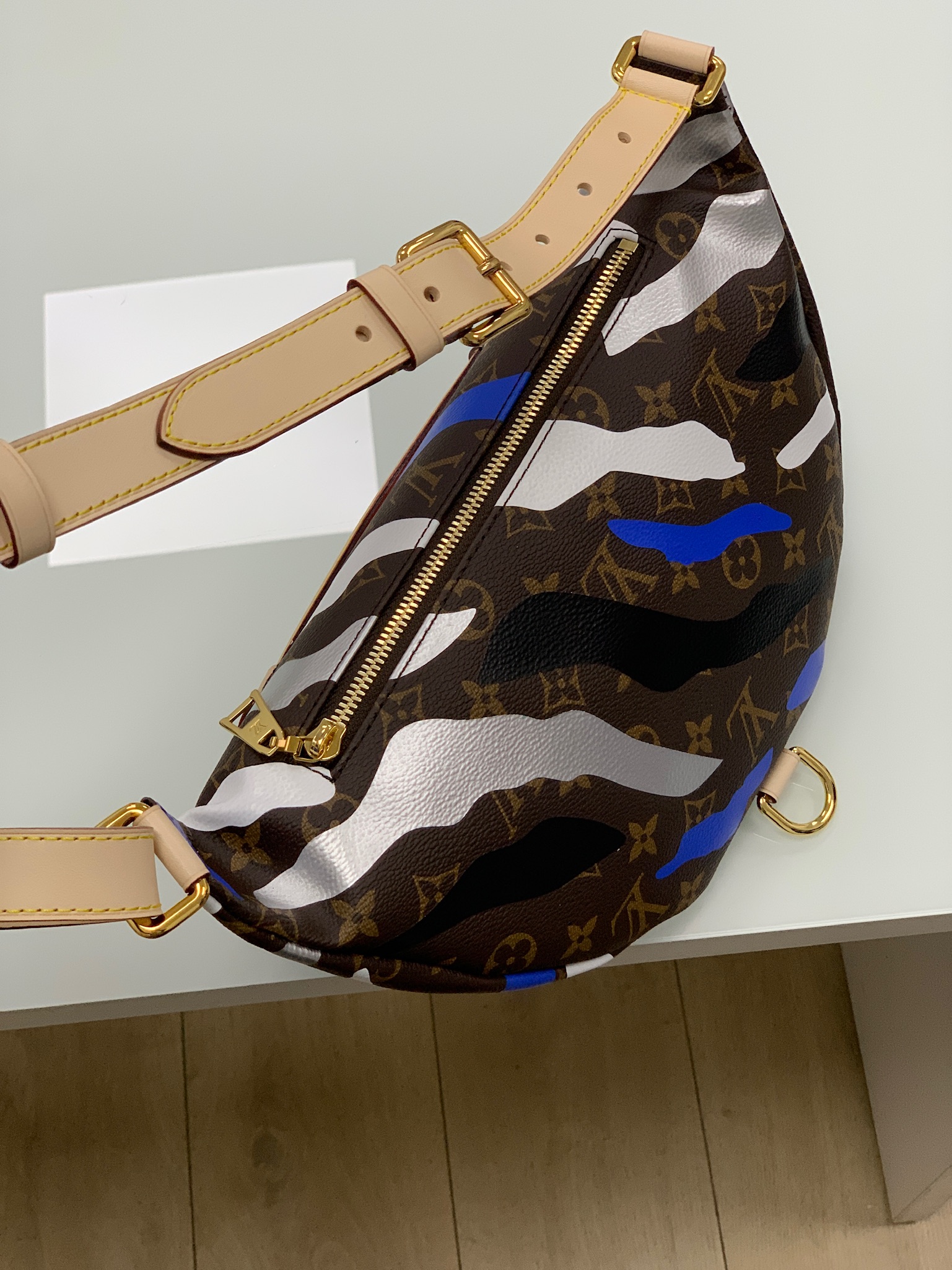 Поясная сумка Louis Vuitton LUX-25628 представляет собой стильный и практичный аксессуар, сочетающий в себе узнаваемый дизайн бренда с современными цветовыми акцентами. Ее камуфляжный узор с яркими синими, белыми и серыми вставками на фирменном монограммном фоне придает ей выразительность. Эта сумка идеально подходит для тех, кто ценит комфорт и функциональность, не жертвуя при этом своим стилем.
