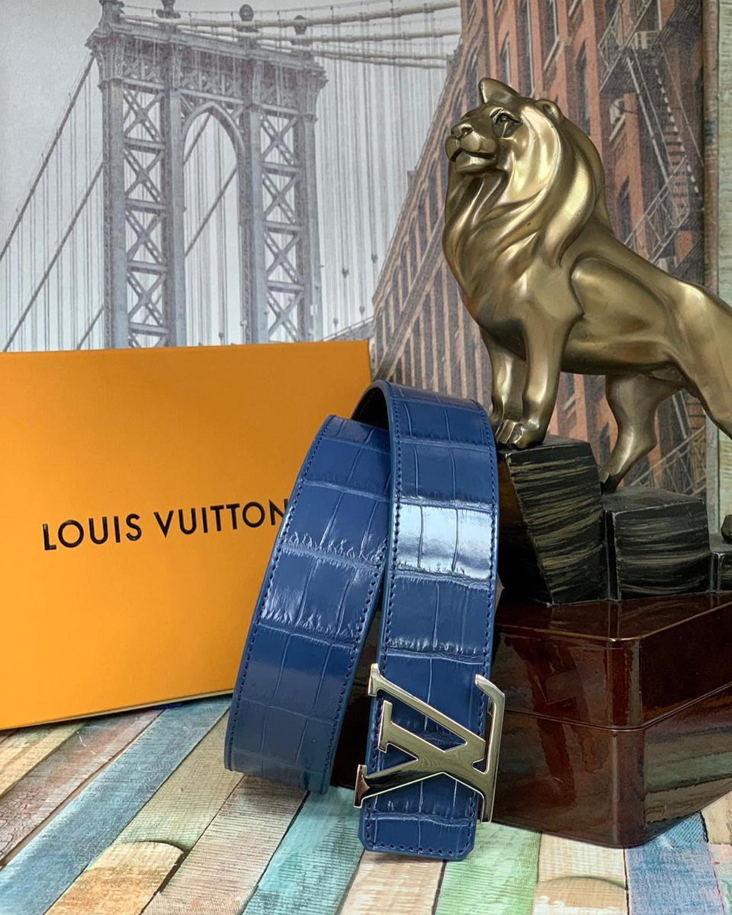 Ремень мужской Louis Vuitton LUX-31435 представляет собой стильный и изысканный аксессуар, выполненный в классическом дизайне. Его яркий синий цвет и фактура, имитирующая кожу крокодила, придают ему роскошный вид. Этот ремень станет эффектным дополнением к любому образу, подчеркивая статус и утонченный вкус владельца.
