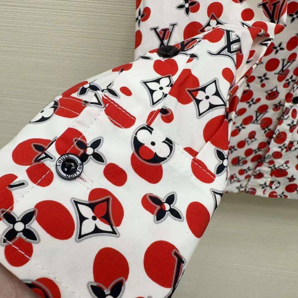 Рубашка Louis Vuitton LUX-85274 представляет собой стильную рубашку с ярким принтом в виде красных кружков с фирменными элементами на белом фоне. Этот предмет гардероба сочетает в себе элегантность и игривый дизайн, что делает его отличным выбором для создания запоминающихся образов. Рубашка подойдет как для повседневной носки, так и для особых случаев.