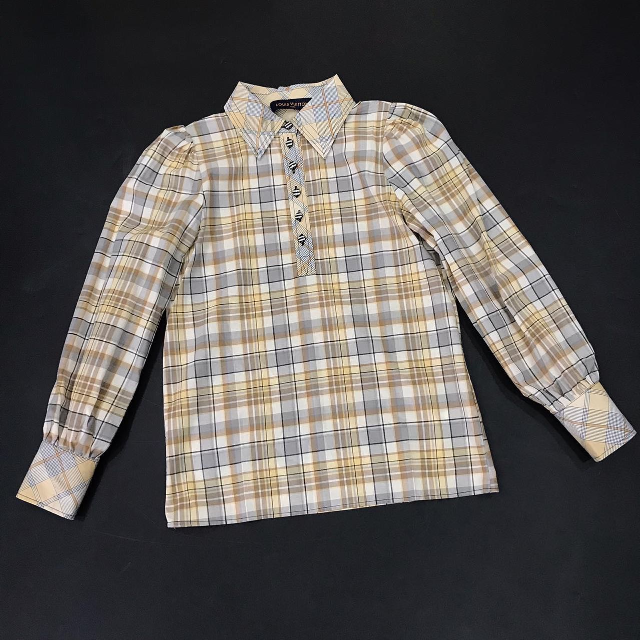 Эта женская рубашка Louis Vuitton LUX-35921 выполнена в классическом стиле с акцентом на детали. Клетчатый узор, состоящий из оттенков бежевого, серого и белого, придает изделию элегантный и утонченный вид. Приталенный крой подчеркивает фигуру, а объемные рукава с манжетами добавляют нотку винтажности. Рубашка идеально подойдет для создания как деловых, так и повседневных образов.