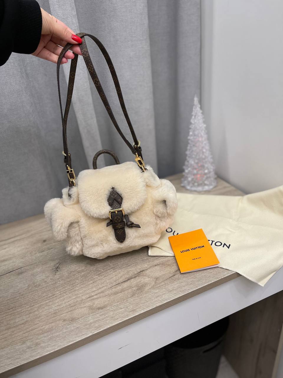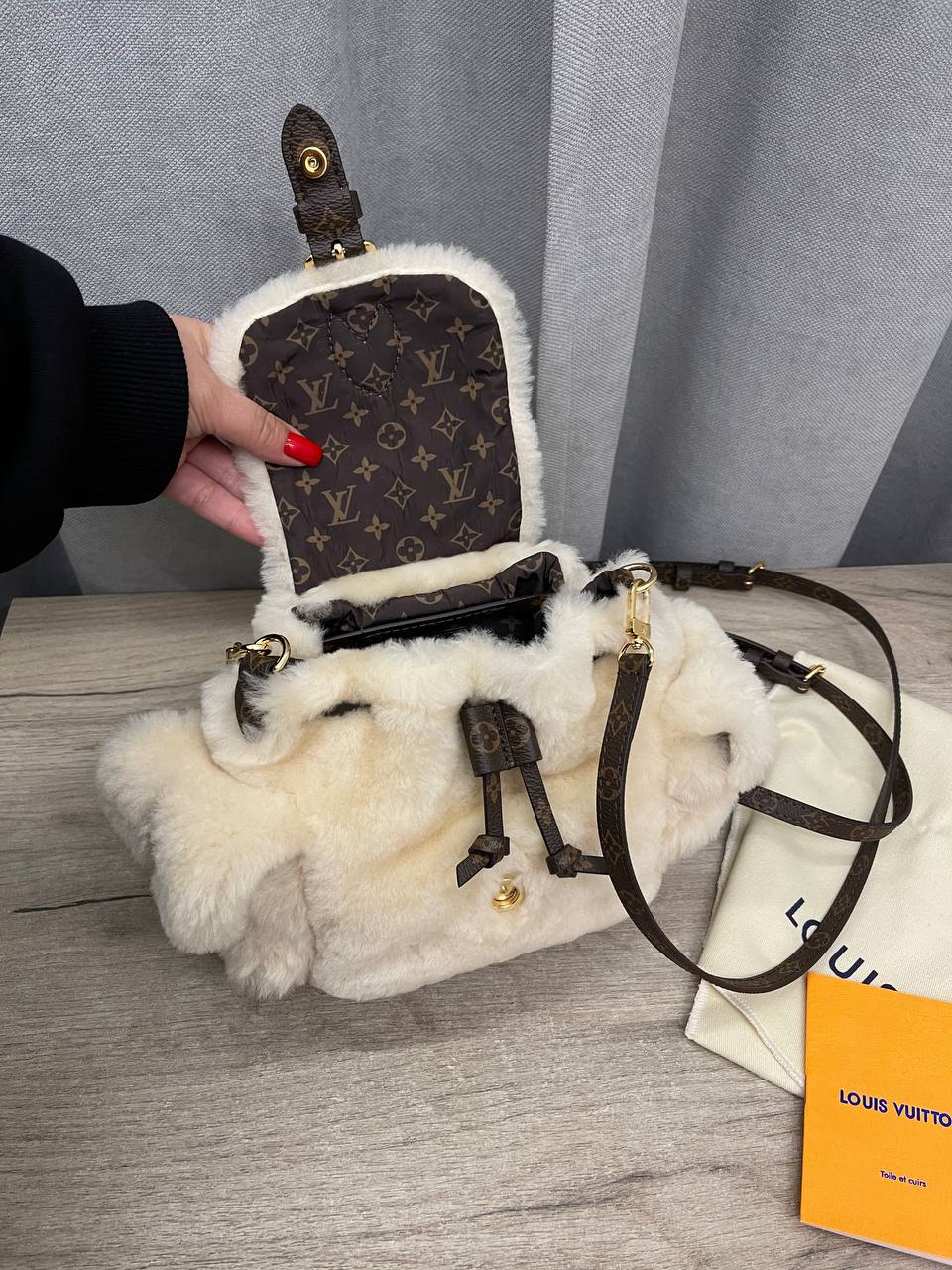 Рюкзак Louis Vuitton LUX-113055 представляет собой стильный аксессуар, сочетающий в себе роскошь и функциональность. Нежный кремовый оттенок меха создает элегантный образ, а коричневые кожаные детали добавляют изысканности. Этот рюкзак идеально подходит для создания неповторимых образов.