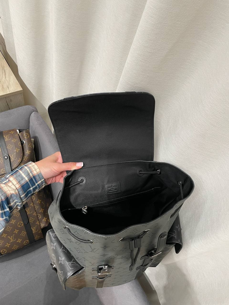 Рюкзак Louis Vuitton LUX-101020 - это стильный аксессуар, сочетающий в себе современный дизайн и роскошь. Темно-серый цвет в сочетании с узором Monogram создает узнаваемый и элегантный внешний вид. Рюкзак идеально подходит для повседневного использования, а также для создания модных образов.