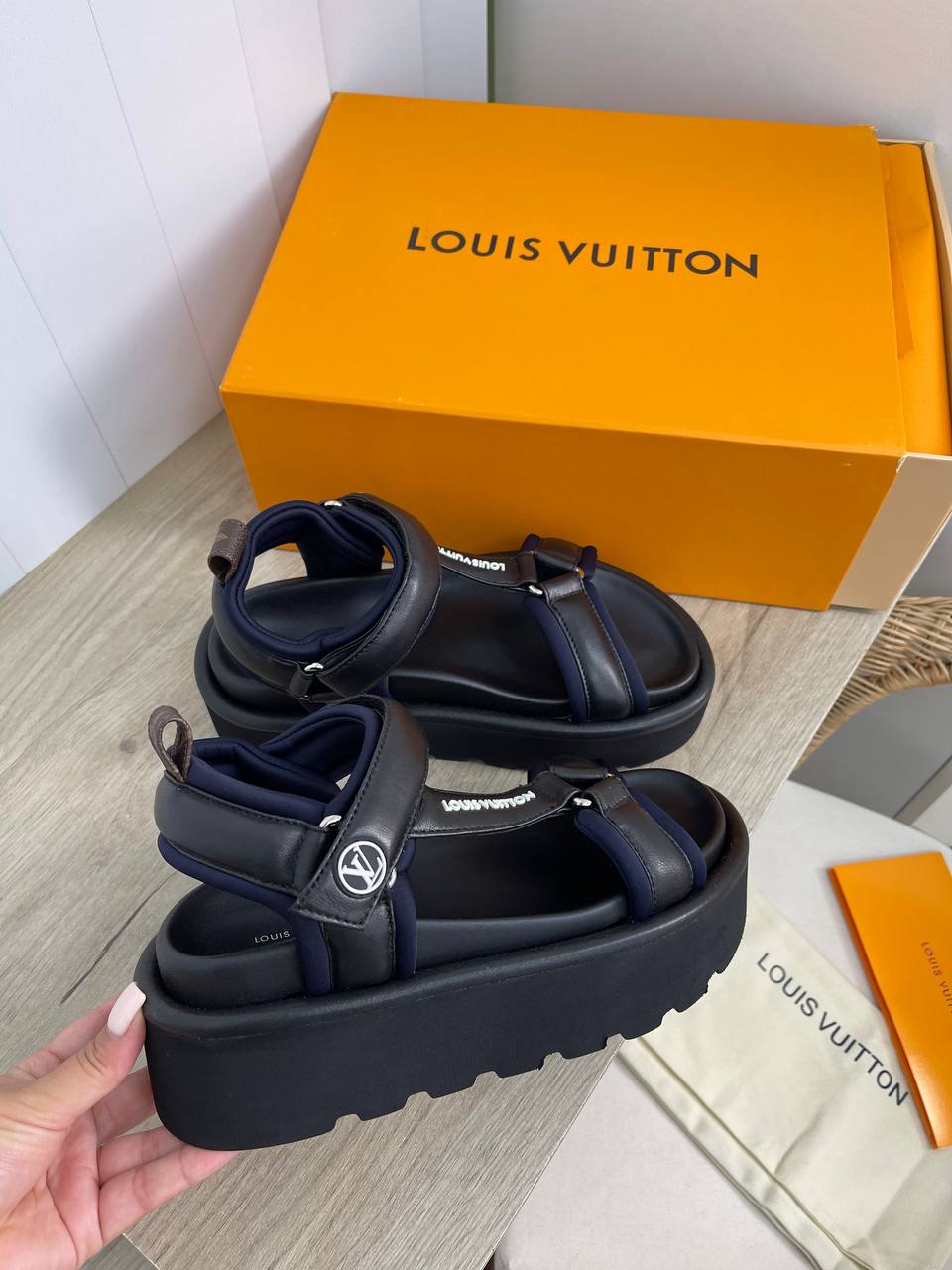 Сандалии Louis Vuitton LUX-74156 представляют собой стильную летнюю обувь, сочетающую в себе комфорт и элегантность. Сандалии выполнены в черном цвете, что делает их универсальными для различных образов. Они отлично подойдут для повседневной носки или для создания стильного летнего образа.