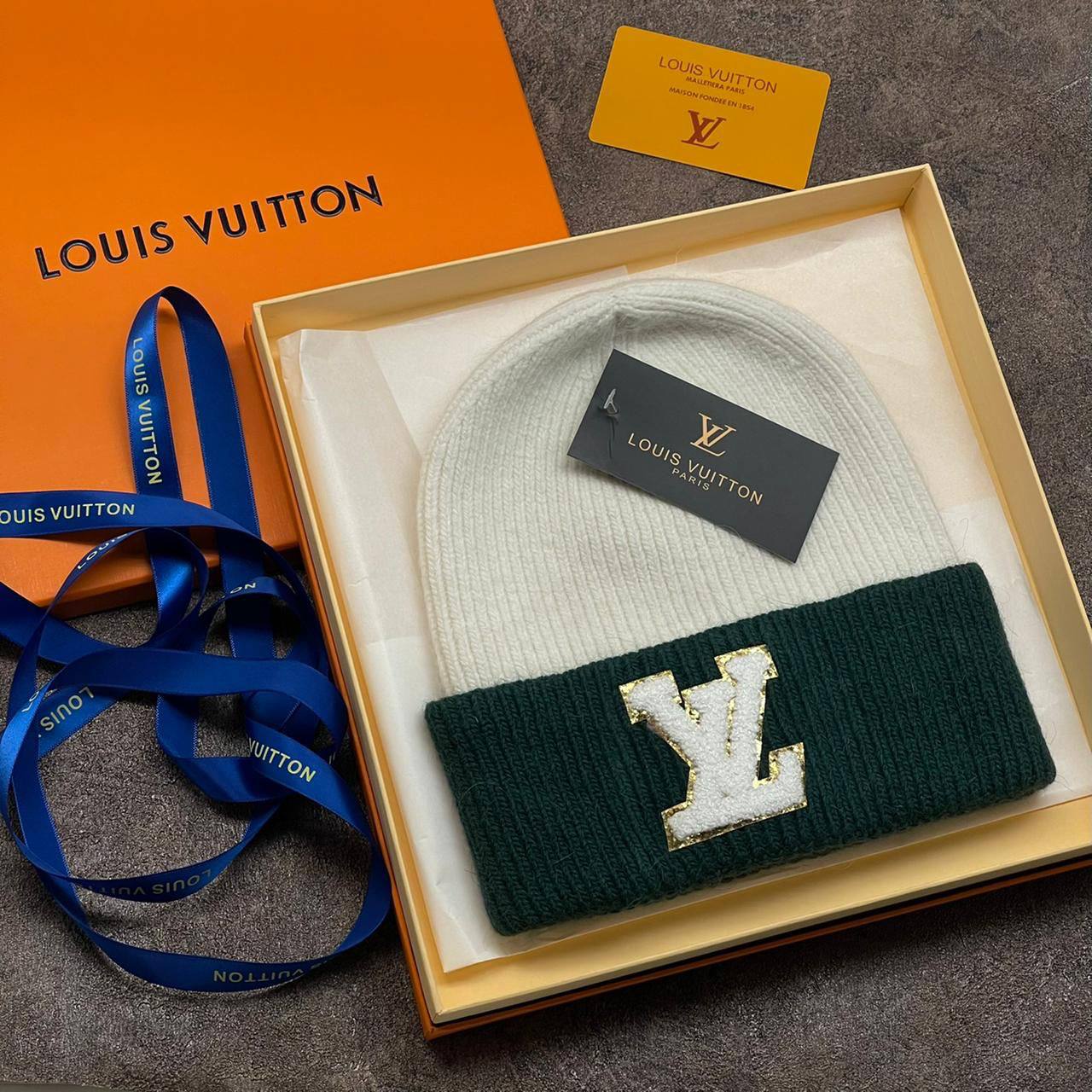 Шапка Louis Vuitton LUX-79687 – стильный аксессуар для холодной погоды от известного бренда. Шапка выполнена в двух цветах: белом и темно-зеленом. На передней части изделия красуется логотип бренда.