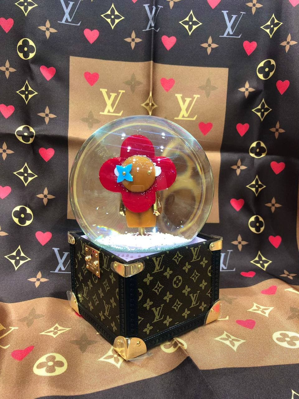 Шар новогодний Louis Vuitton LUX-61001 — это изысканный элемент декора, выполненный в фирменном стиле Louis Vuitton. Он сочетает в себе элегантность и праздничное настроение, что делает его идеальным украшением для вашего дома или оригинальным подарком. Основание шара имитирует знаменитый чемодан бренда, а внутри стеклянного купола расположена декоративная фигурка.