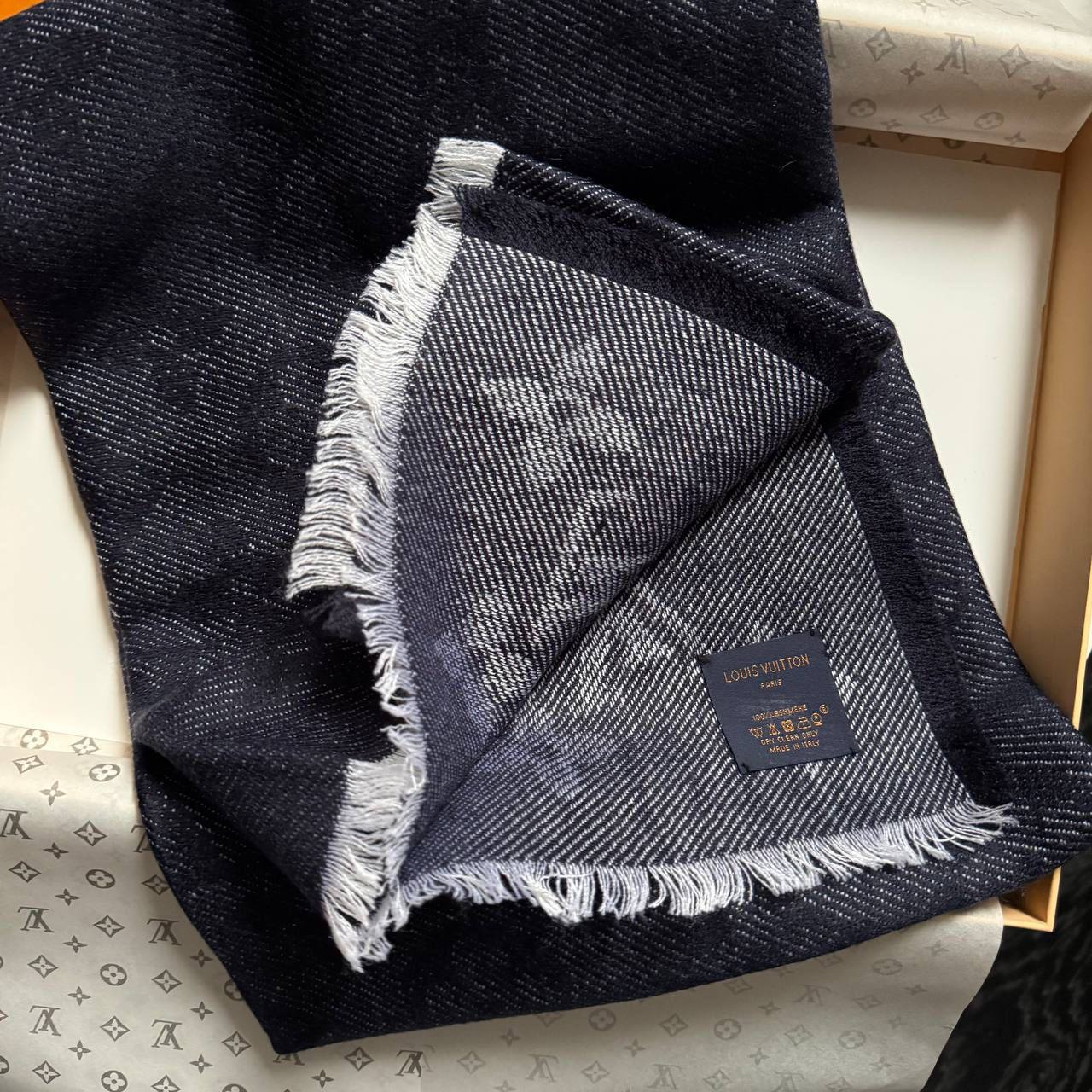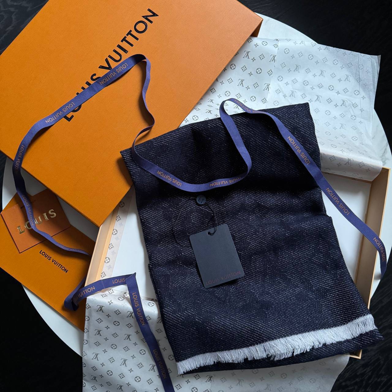 Шарф Louis Vuitton LUX-113663 представляет собой стильный аксессуар премиум-класса. Шарф выполнен в темно-синем цвете с белой бахромой по краям. Этот шарф может быть как элементом повседневного гардероба, так и дополнением к более формальному образу.