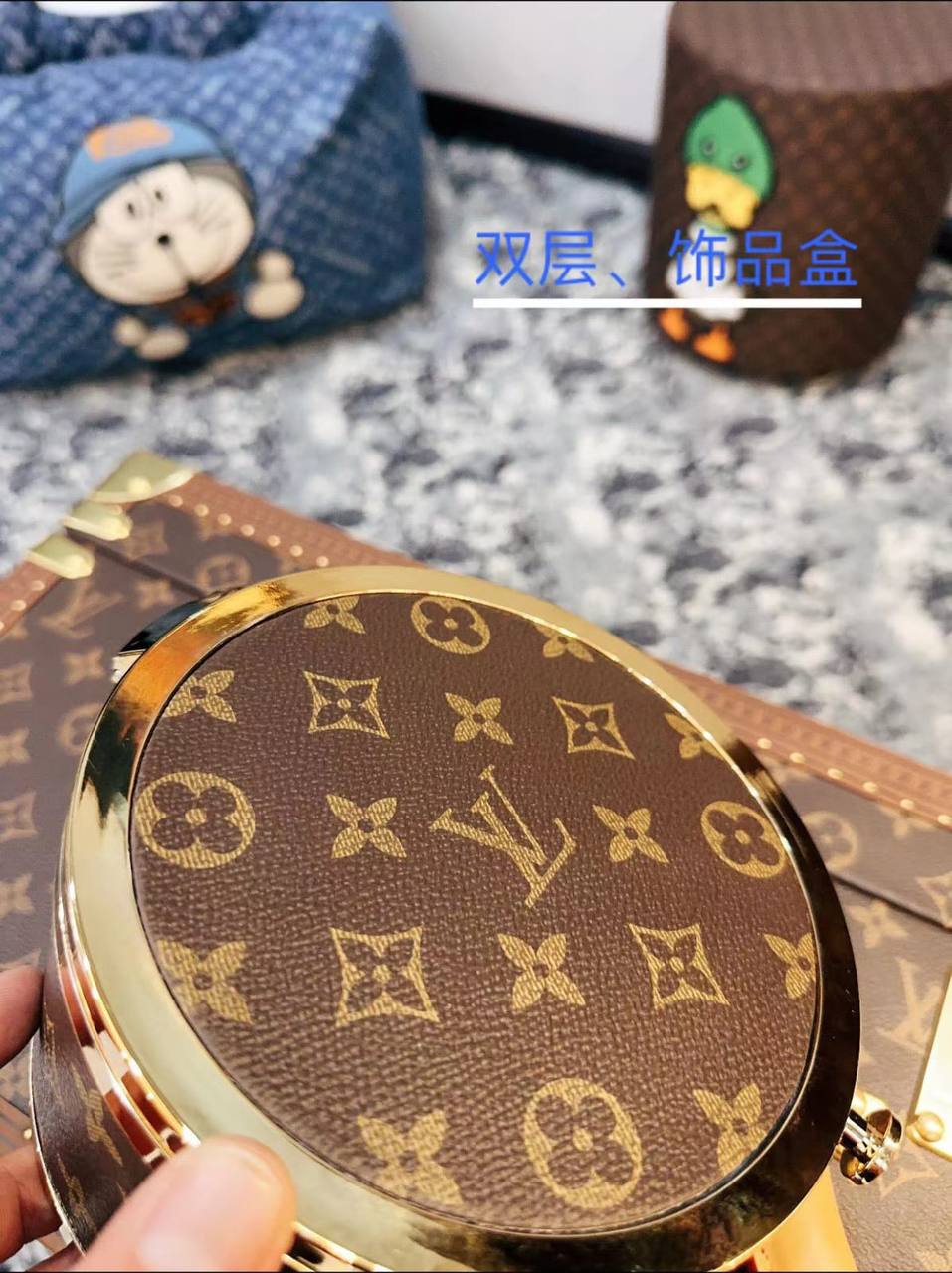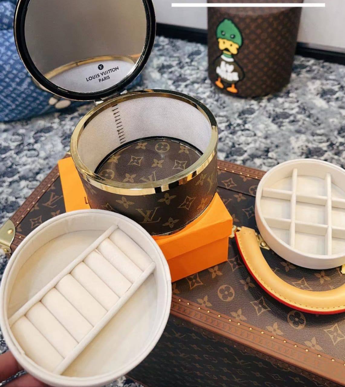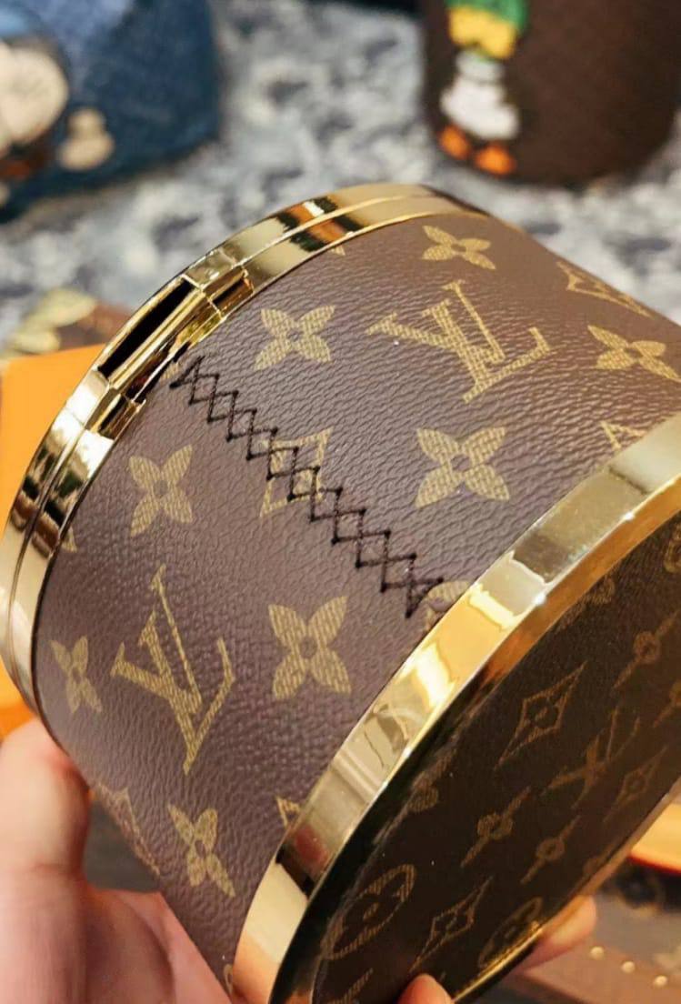Шкатулка Louis Vuitton LUX-95050 представляет собой элегантный аксессуар, выполненный в фирменном стиле бренда. Круглая форма шкатулки, коричневый цвет с монограммой LV создают узнаваемый образ. Предназначена для хранения ювелирных изделий, мелких аксессуаров или личных вещей.