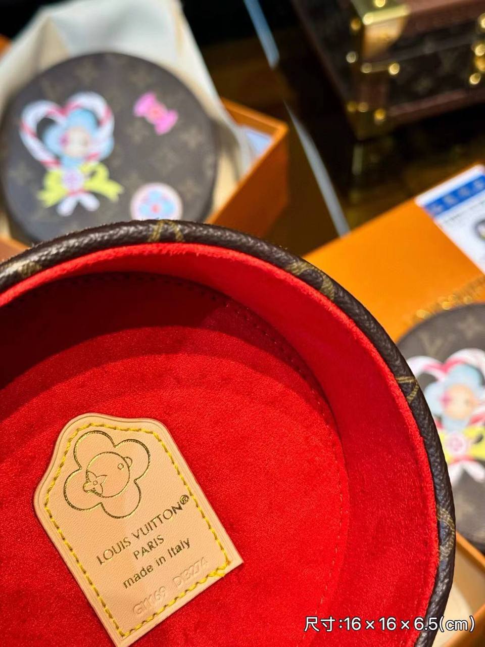 Шкатулка Louis Vuitton LUX-117911 представляет собой изысканный аксессуар, воплощающий элегантность и стиль. Круглая форма шкатулки с узором Monogram, нанесенным по всей поверхности, придает изделию узнаваемый облик. Декоративные элементы добавляют уникальности и делают её привлекательным аксессуаром.