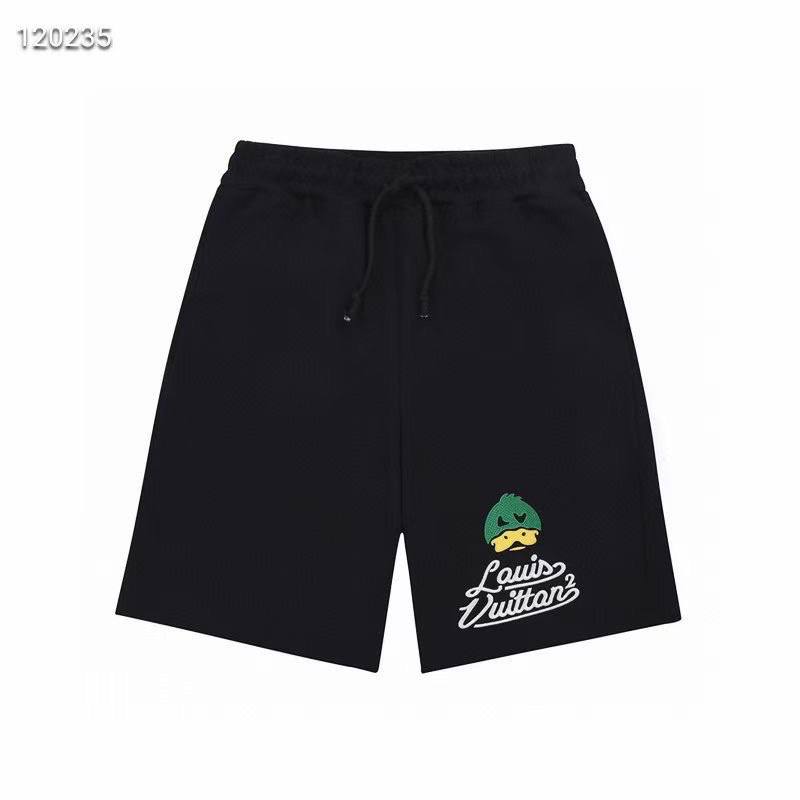 Шорты Louis Vuitton LUX-66553 представляют собой стильный и комфортный вариант одежды, идеально подходящий для повседневного ношения. Черный цвет и лаконичный дизайн дополнены оригинальным принтом с изображением утенка и логотипом бренда Louis Vuitton, что придает изделию узнаваемый и модный вид. Благодаря свободному крою и эластичному поясу с завязками, эти шорты обеспечивают максимальное удобство в движении.